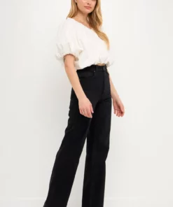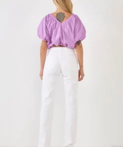 This adorable little crop top is perfect for summer! The white color makes it perfect to wear with anything, and the cropped silhouette and v-neckline add a touch of style. Plus, the puff sleeves give you a fun and flirty look. Wear this top with shorts or jeans for a casual summer look.