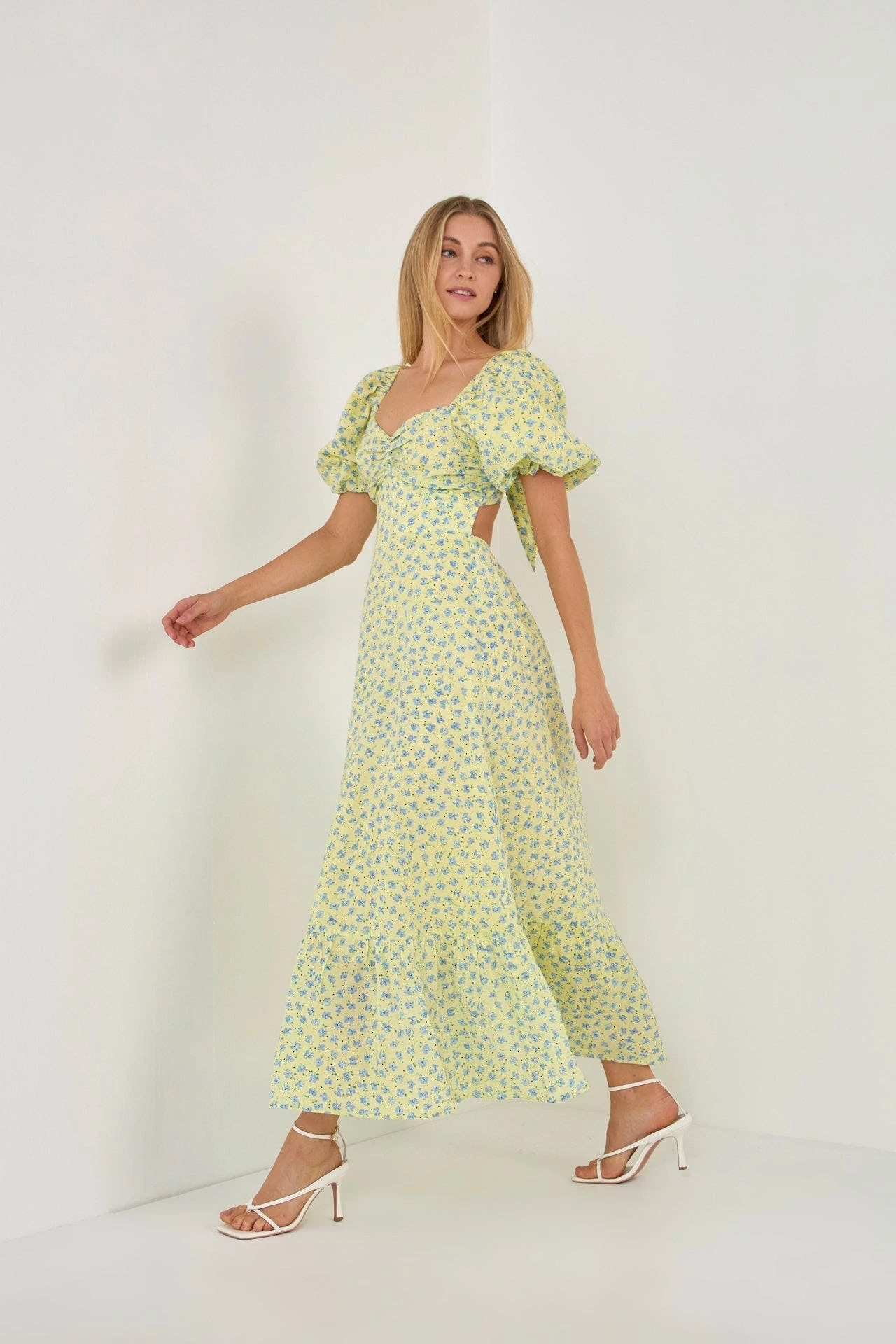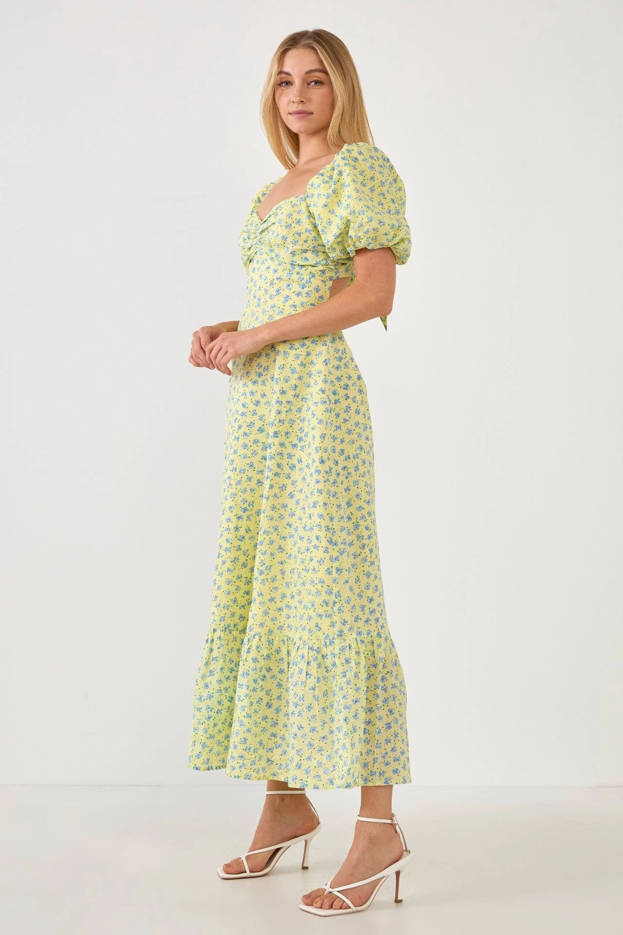 Get summertime fine with this floral print maxi dress. With a flattering back tie detail and puff sleeves, this dress is perfect for your next outdoor soiree. And no need to worry about the sun-this maxi dress comes lined so you can focus on enjoying your time in the sun.