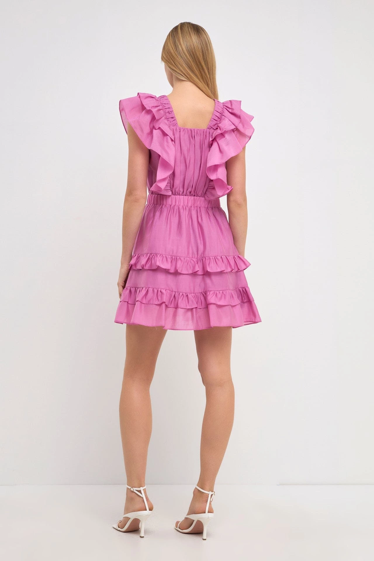 Featuring lavish color and lovely ruffles, this endless rose mini dress is a piece with day to night potential. Team it up with tonal heels to complete your look.