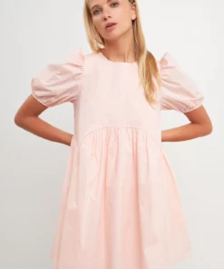 Introducing the asymmetrical baby doll mini with back spaghetti ties! This darling little number is sure to become your new favorite. Made from a beautiful solid poplin fabric, it features a baby doll silhouette with a curved waist and mini length. The short puff sleeves and back double spaghetti tie add a playful and flirty touch. Whether you’re dressing up for a special occasion or just looking for a fun and flirty day-to-day look, this dress is sure to turn heads.