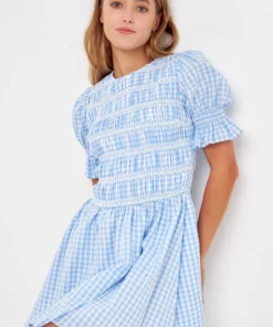 Crafted from lightweight cotton gingham fabric this mini dress features a smocked bodice and puffy short sleeves. The smocked bodice creates a flattering fit-and-flare silhouette. The mini length makes this dress perfect for hot summer days.