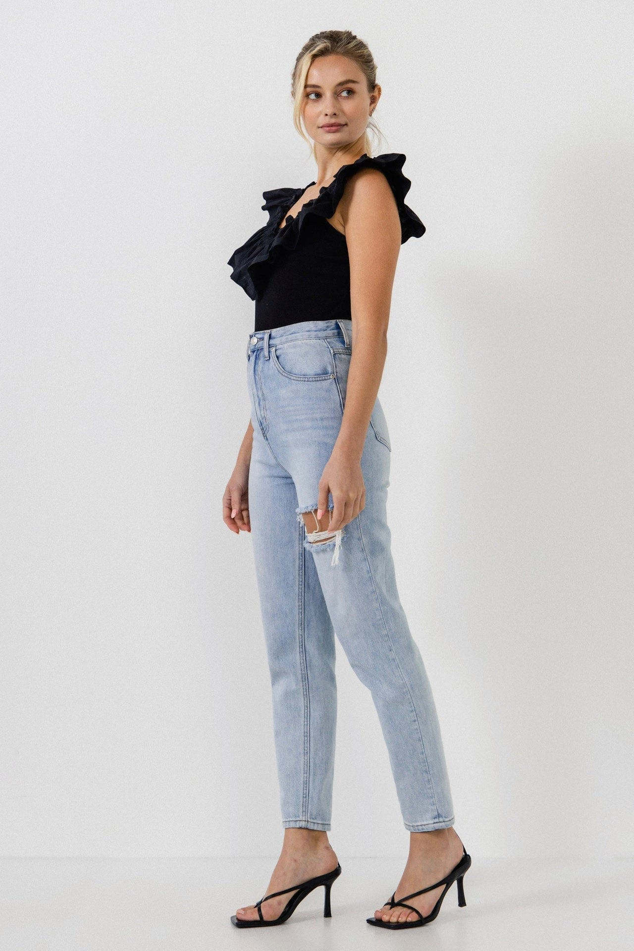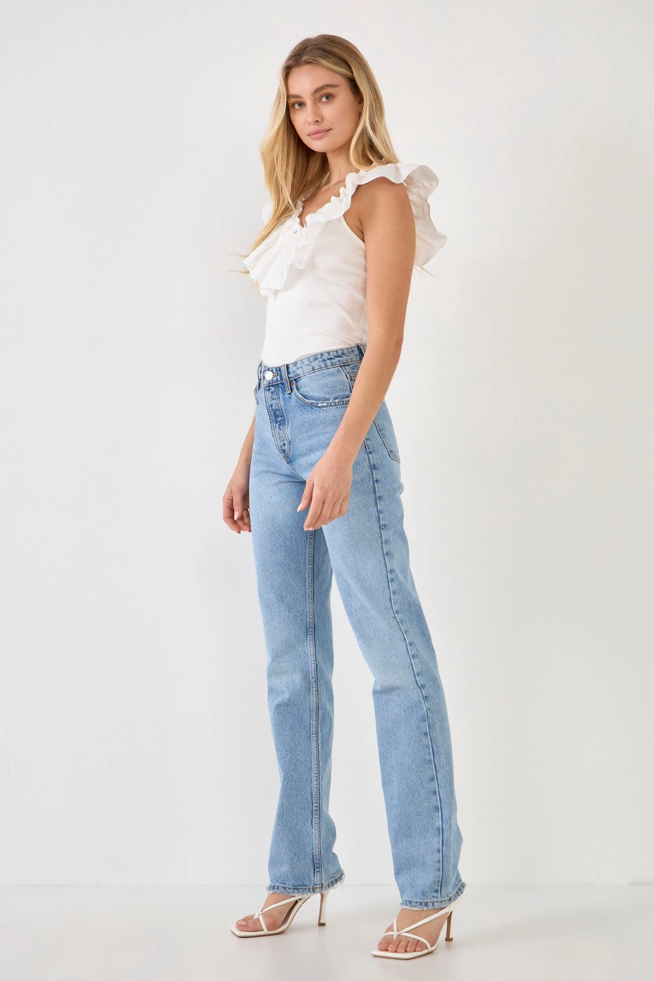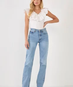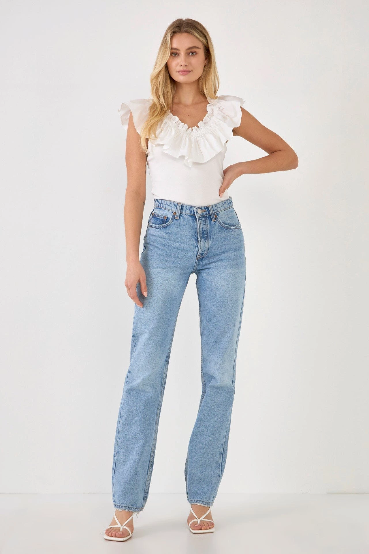 Elevate your everyday style with this pretty tank top. Feminine and flowy, this tank top features a playful ruffle detail at the neckline. With its mixed media design, it’s perfect for dressing up or down. Wear it with jeans and sandals for a casual day out or dress it up with trousers and heels for a night on the town. No matter how you style it, this tank top is sure to turn heads.