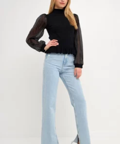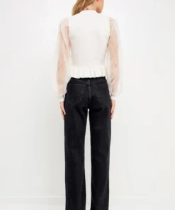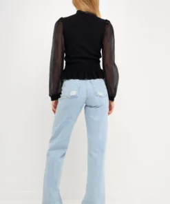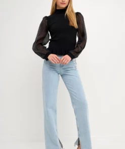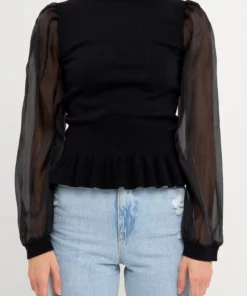 Elevate your style with this knit blouse. With its mixed-media fabrication, this blouse is sure to turn heads. The organza long sleeves and mock neck give it an elevated look, while the knit ribbed waist panel ensures a comfortable fit. Whether you’re dressing up for a special occasion or just want to feel a bit more polished, this top is perfect for the job.