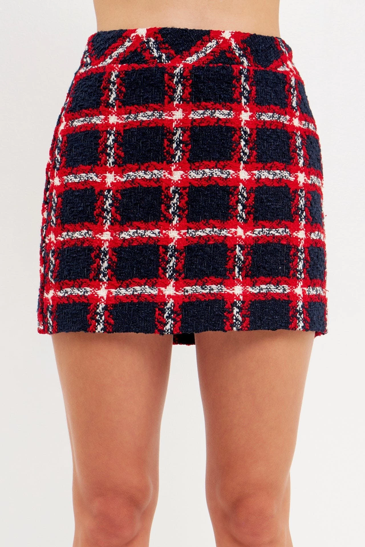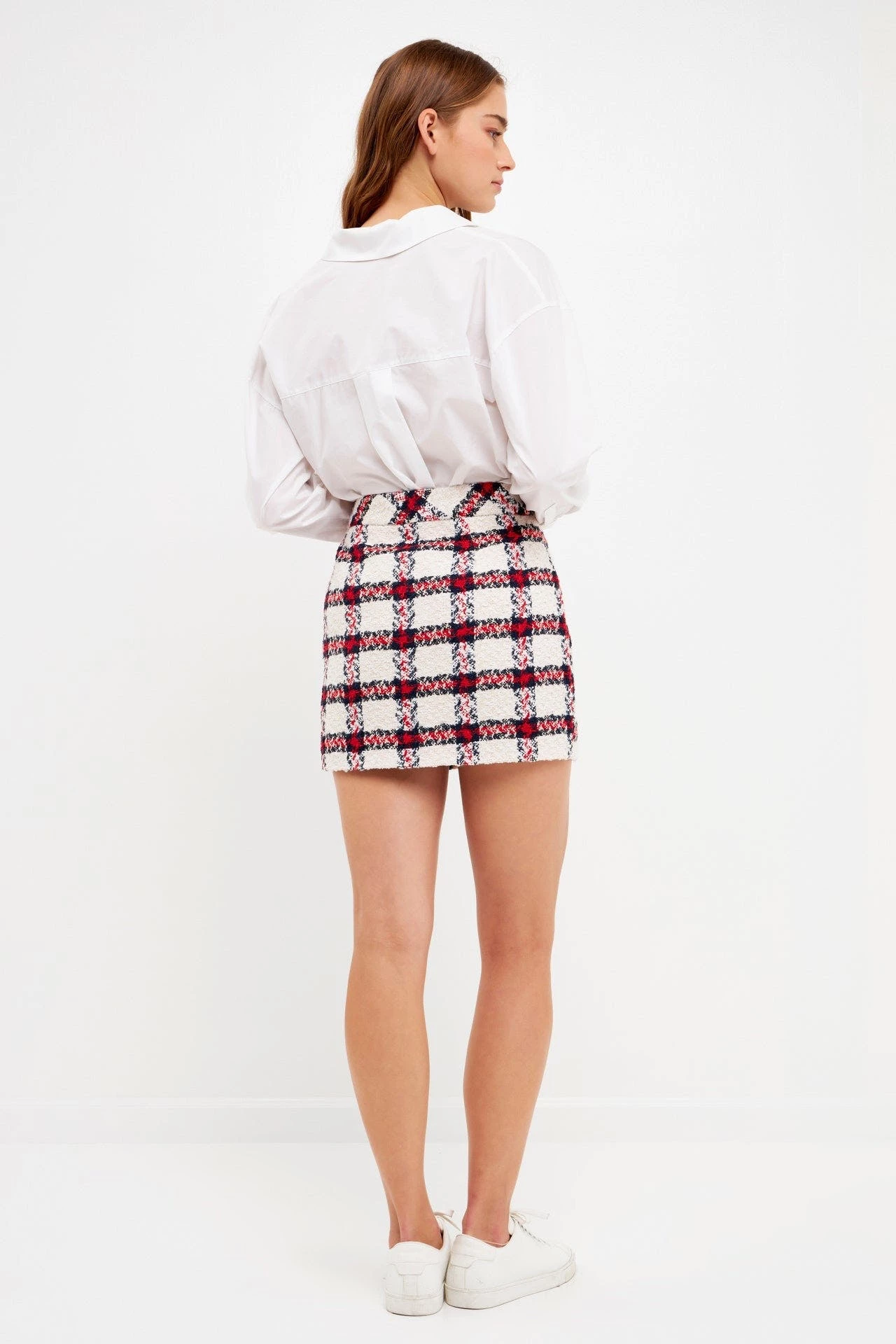 Get ready to take on the day with this Check Boucle Skirt. With a mini length and waistband, this skirt is perfect for a day at the office or a night on the town. The side zipper ensures a perfect fit, while the boucle fabric adds a touch of luxury. Whether you’re pairing it with a blouse and heels or a sweater and flats, this skirt is sure to impress.
