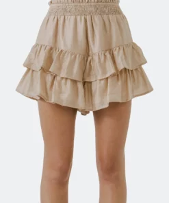 Looking for something fun, flirty, and feminine? This smocked waist skort with ruffle is perfect for you! The skirt-like look is super trendy right now, and the beige color is perfect for any occasion. Match it with the crop top available in this set to complete the look. Whether you’re dressing up or dressing down, this skort will have you looking your best.