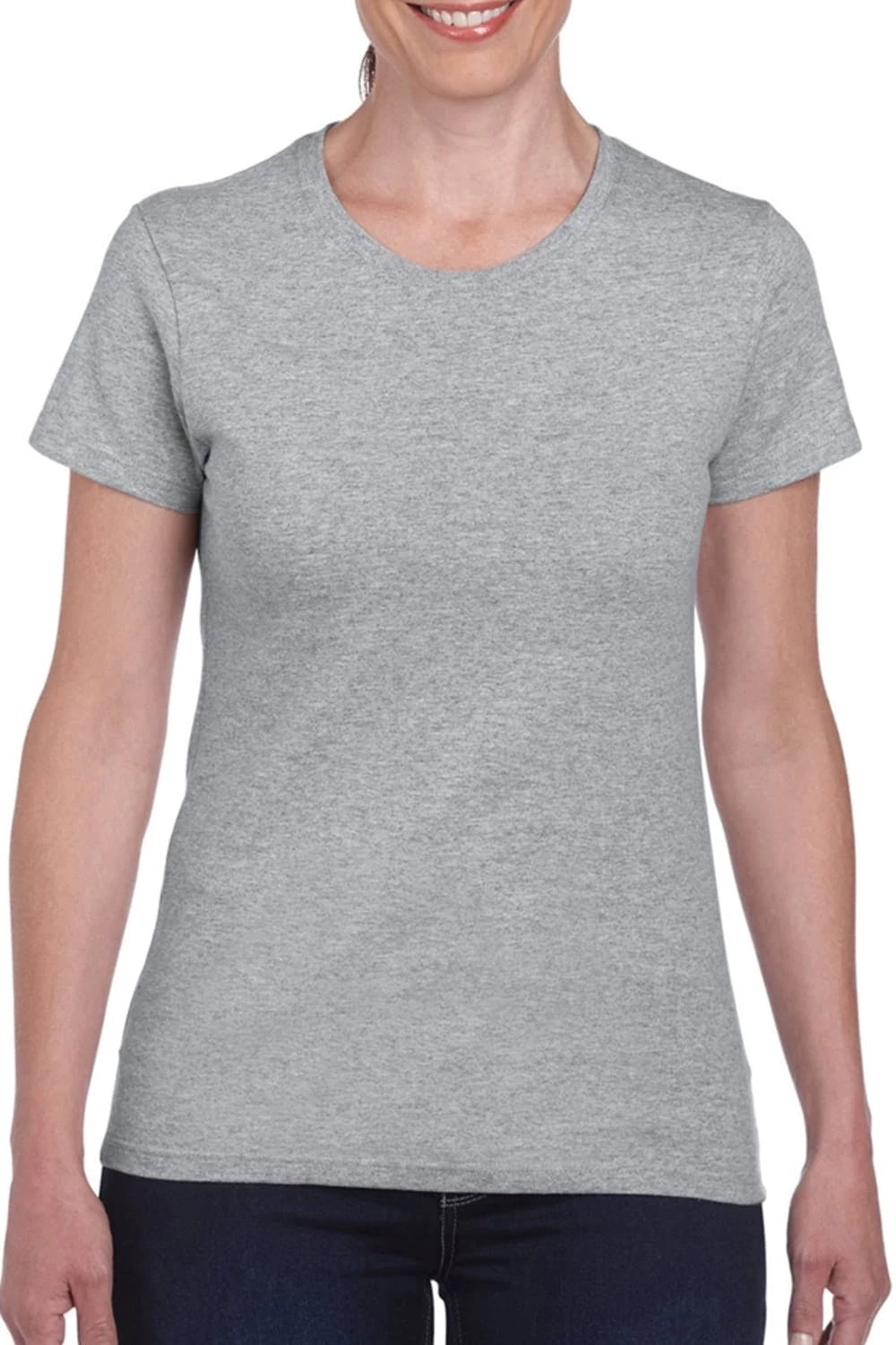 – Seamless twin needle 1/2 collar- Taped neck and shoulders- Near cap sleeves for comfort- Side seam construction with slightly tapered fit- Twin needle sleeves and bottom hem