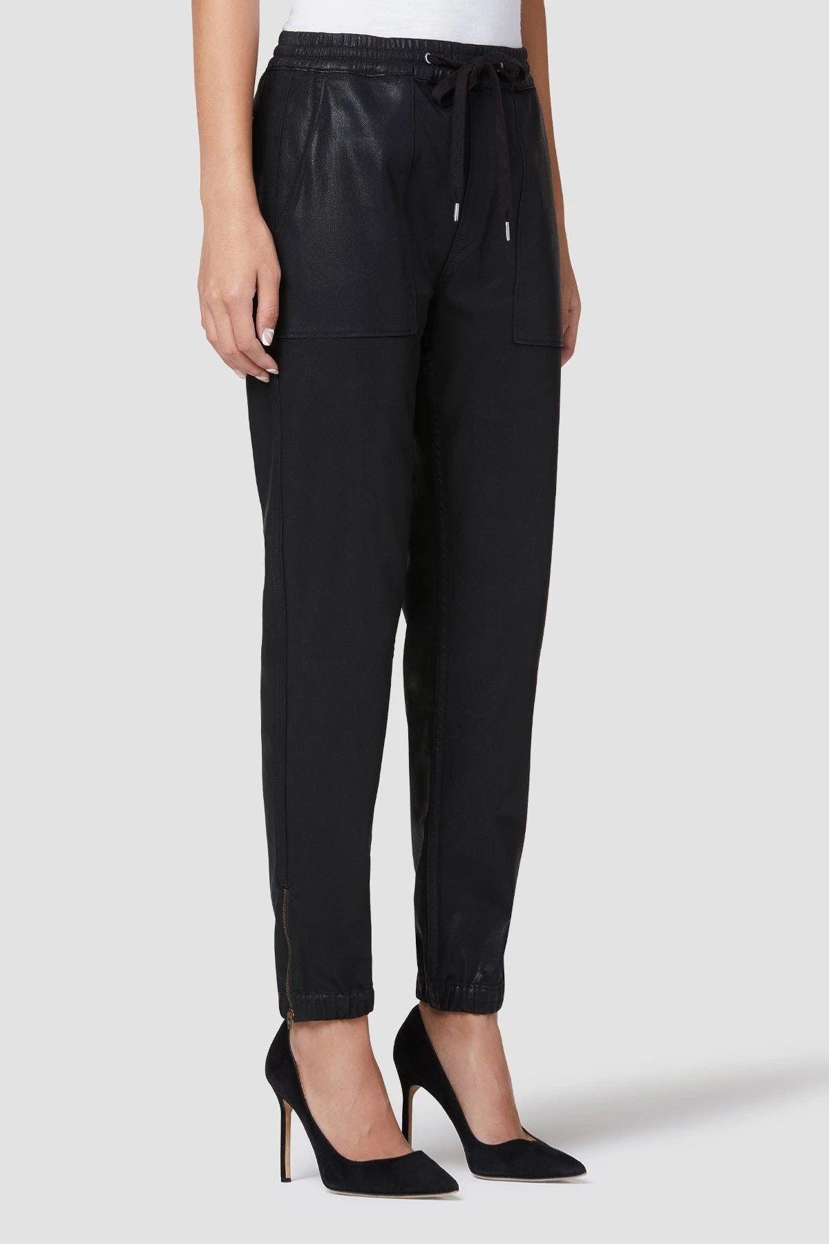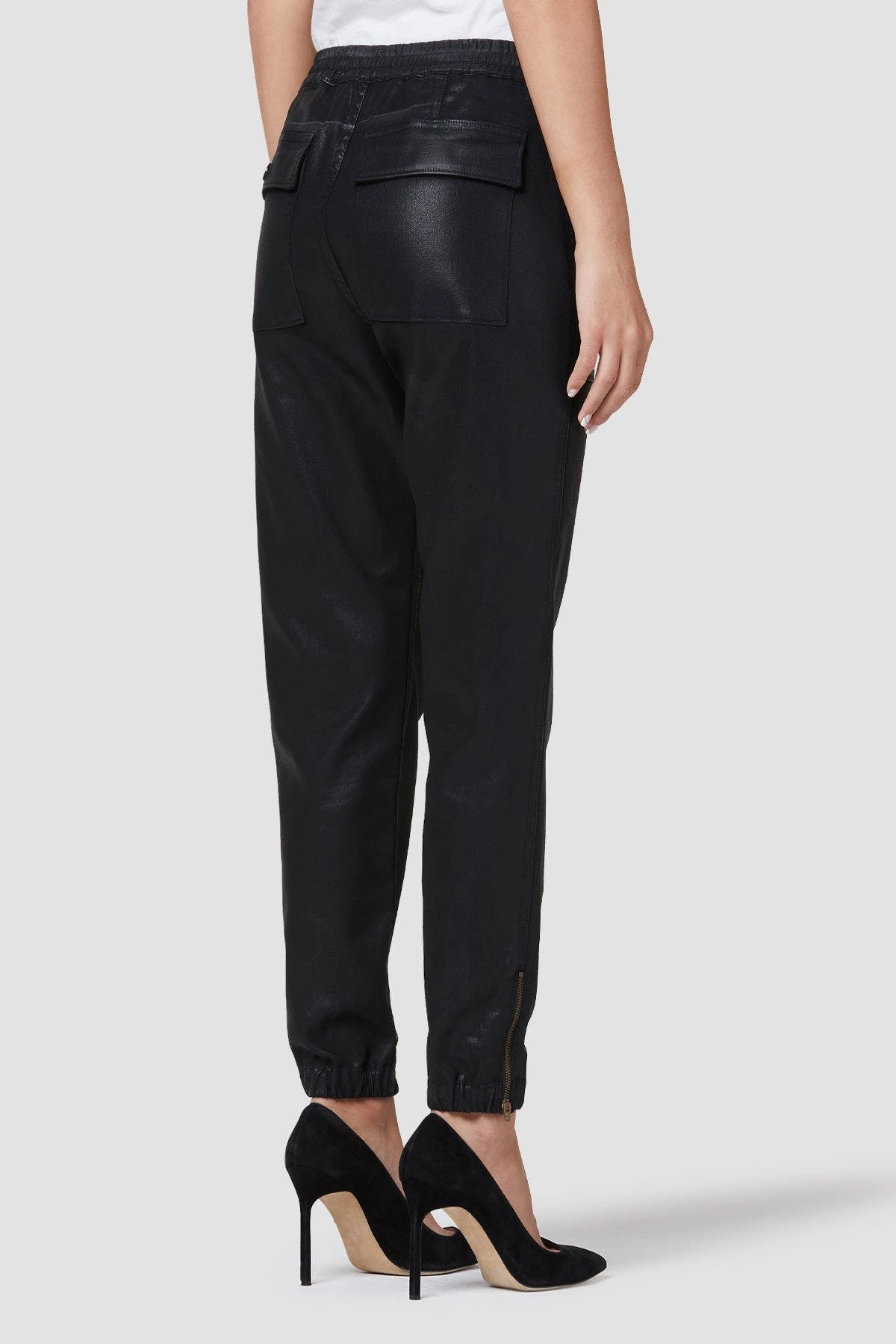 Sweatpants meet surplus in our Utility Jogger in Black Coated. Features an elastic drawstring waistband, utilitarian pockets, and zippered hems.