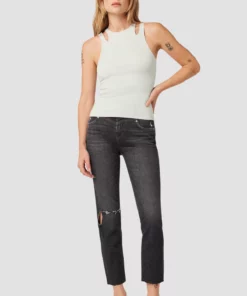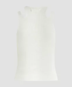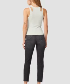 Simplicity stepped up. our ribbed cut out tank in stormy grey is made from a soft and stretchy cotton-blend knit and features cutouts on the shoulders.