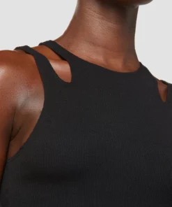 Simplicity stepped up. The ribbed Cut Out Tank in Black is made from soft cotton and features cutouts on the shoulders.