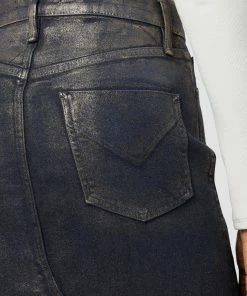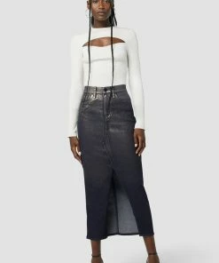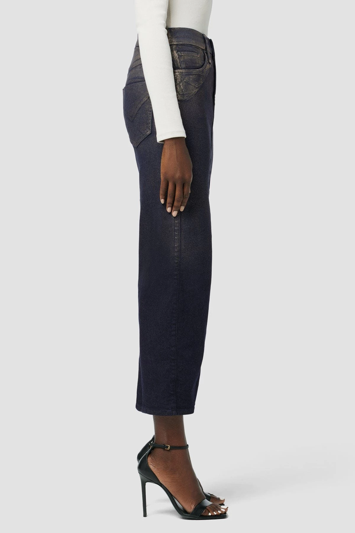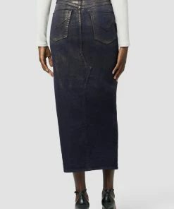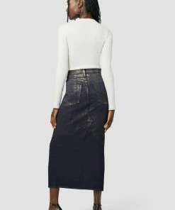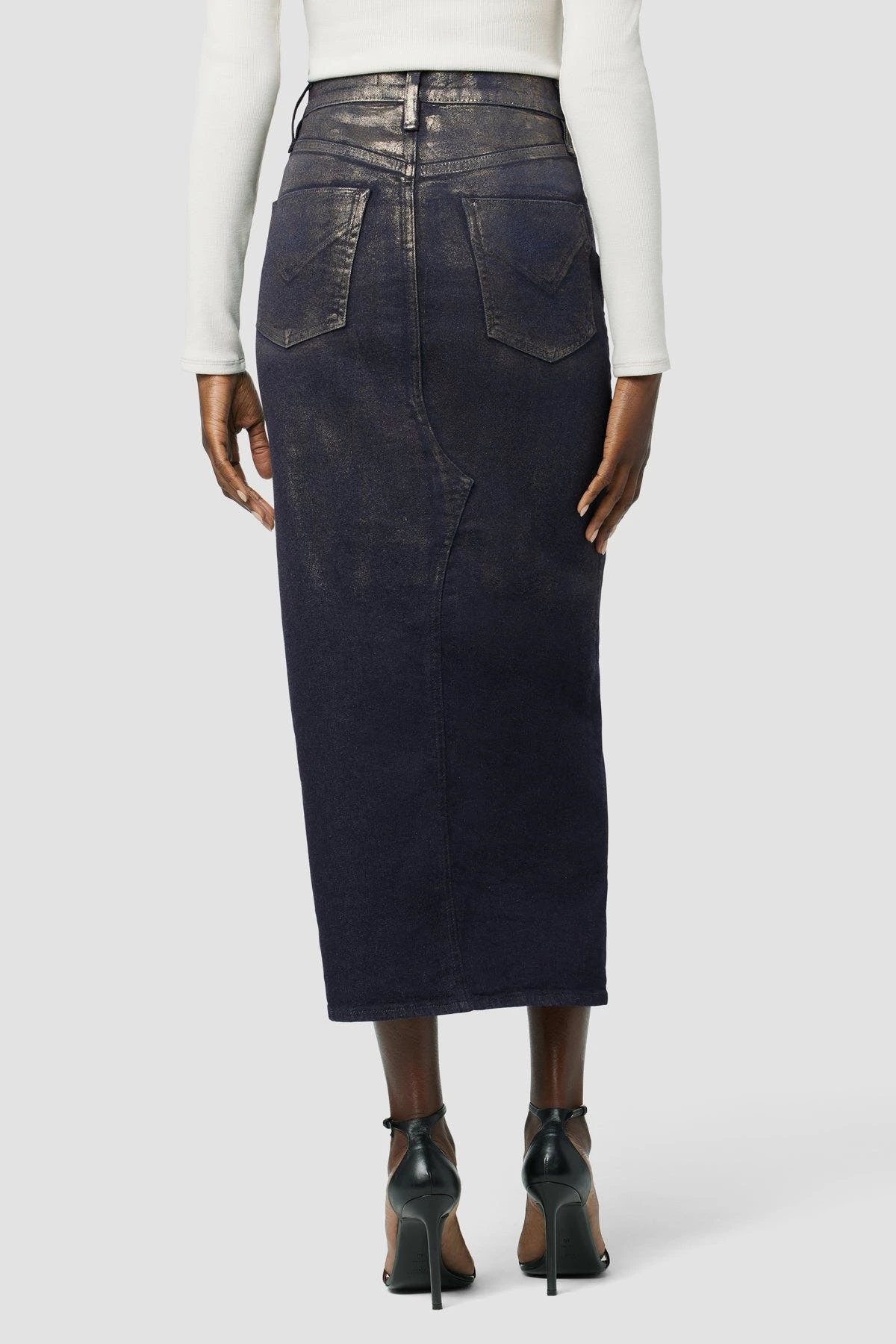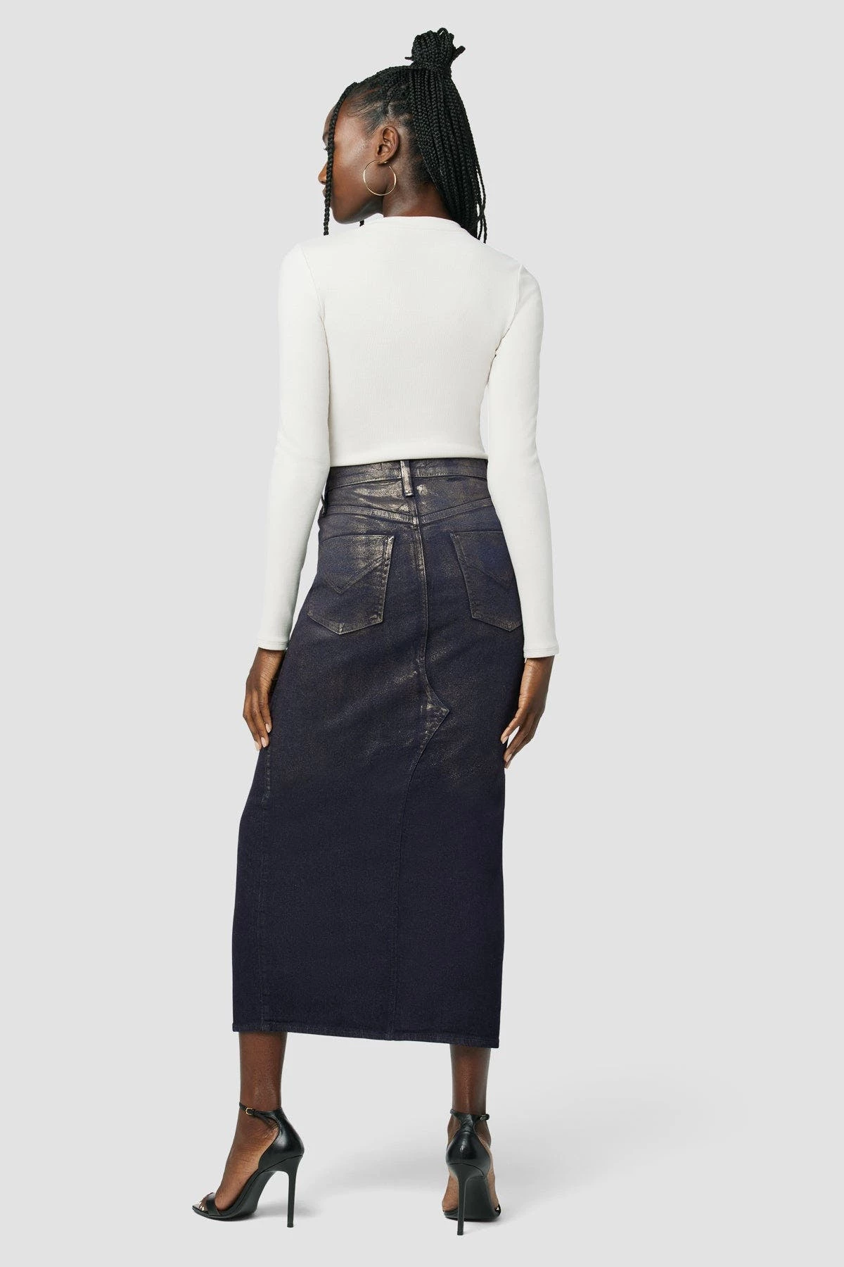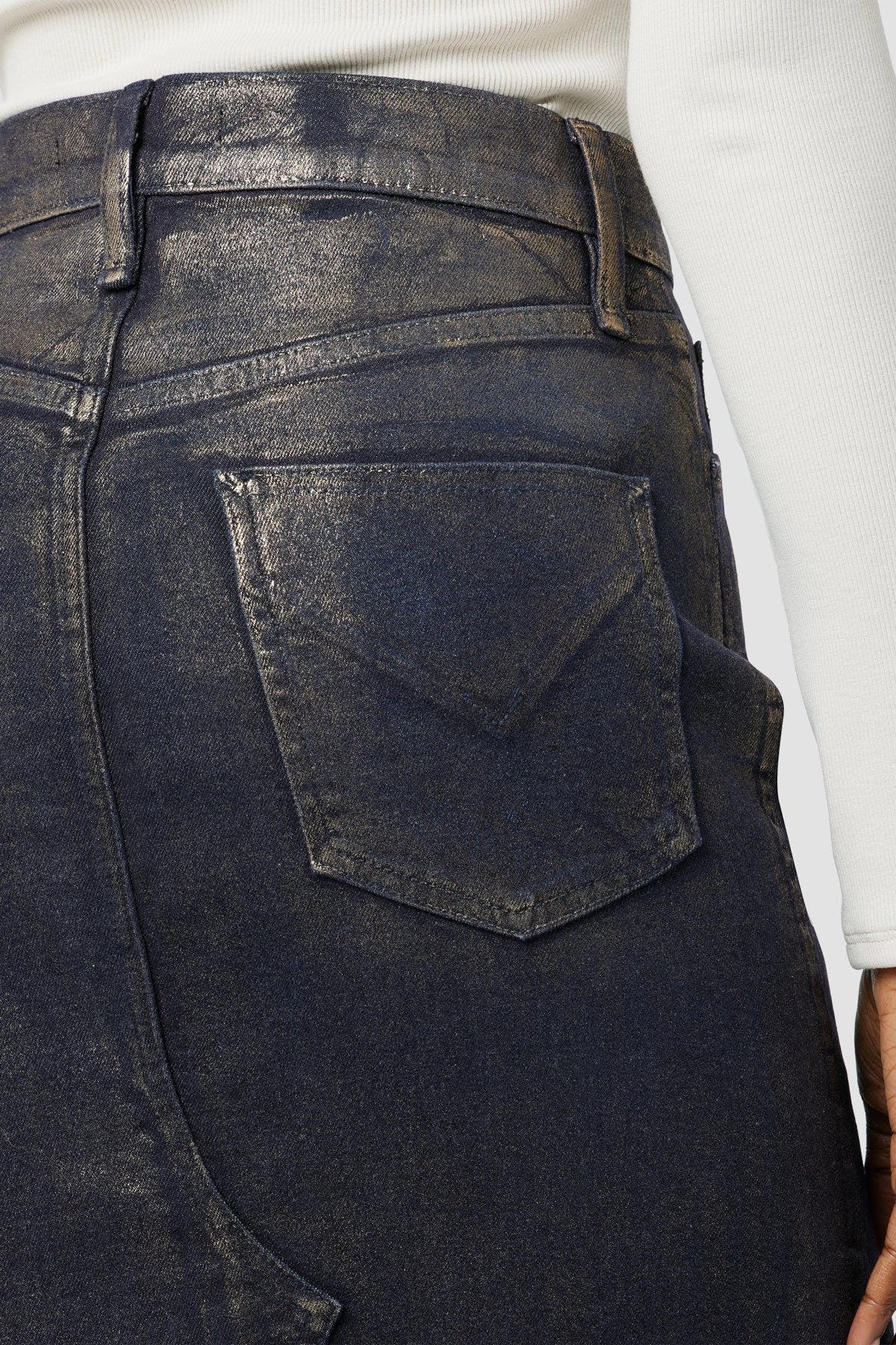 Long and sleek, our Reconstructed Skirt in Ombre Foil is cut from premium comfort stretch denim with a high center slit and gentle fading for vintage appeal.