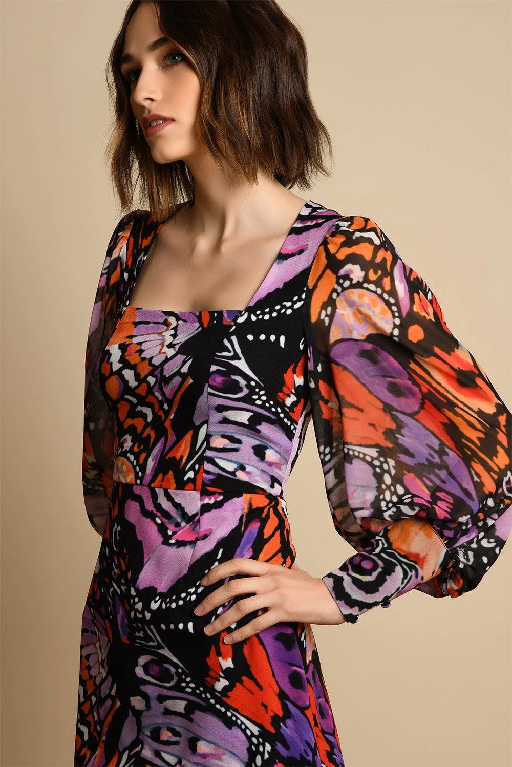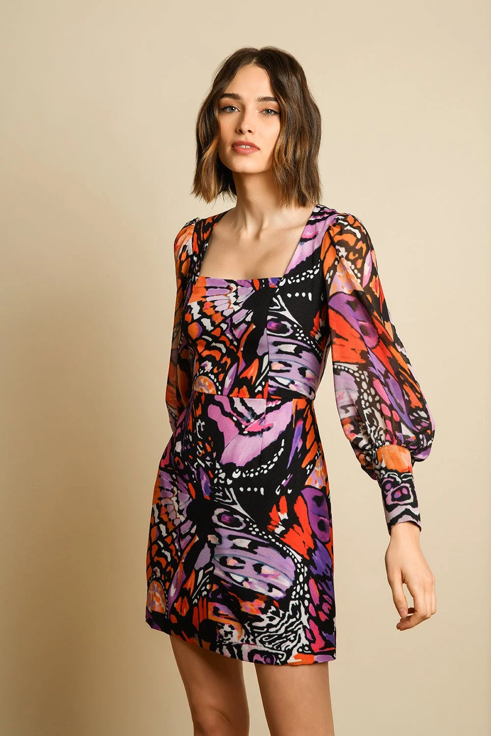 – Best selling square neck mini dress- Chiffon sleeve with crepe body- Crepe long cuff with button closure- Center back zipper- 35″ from HPS