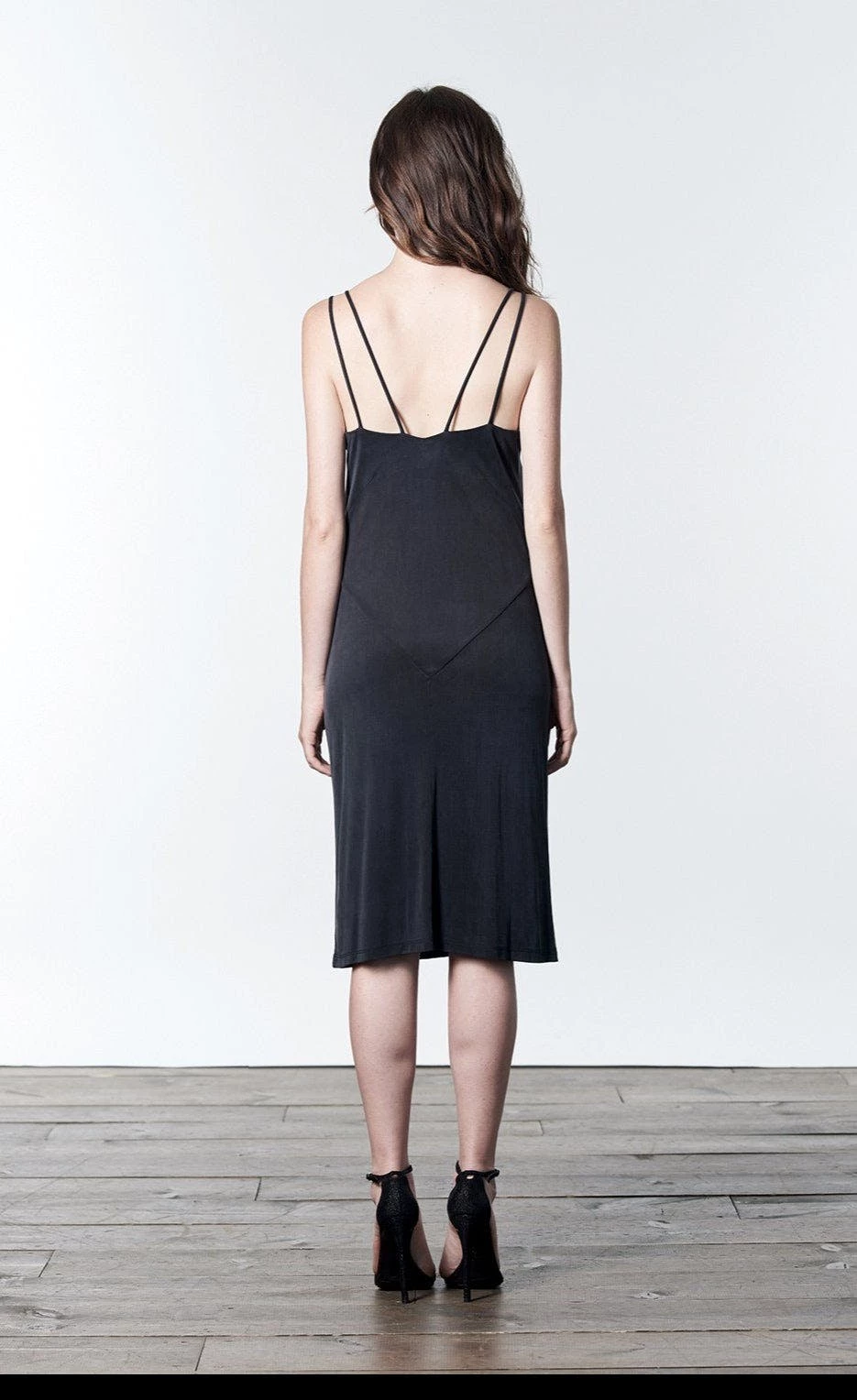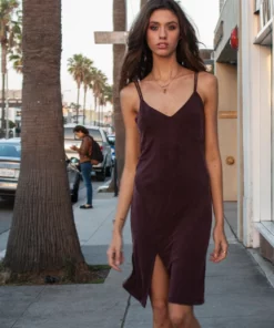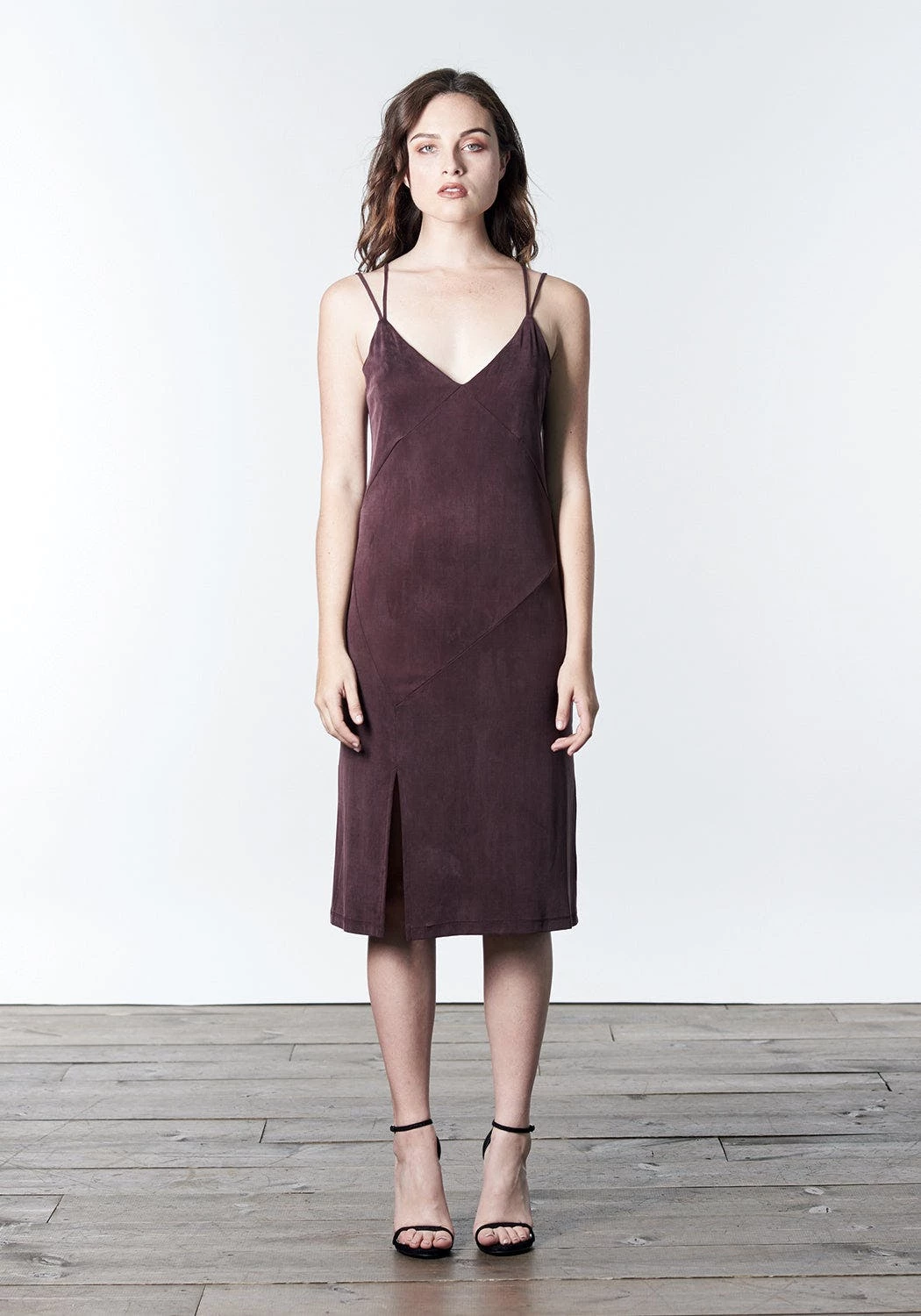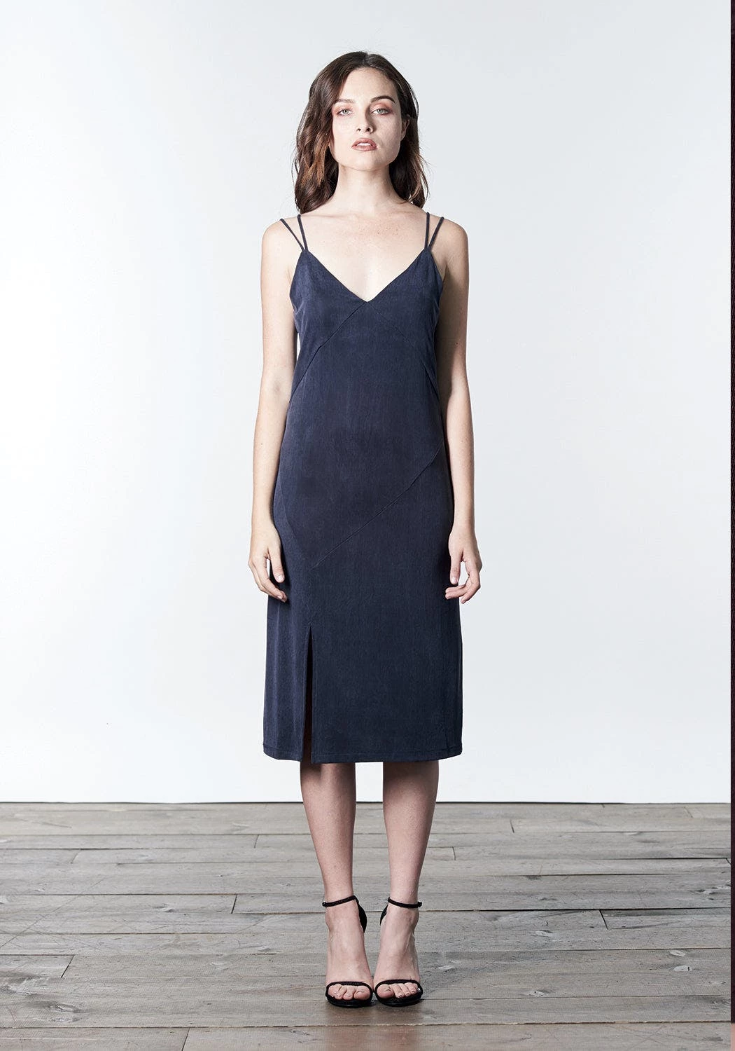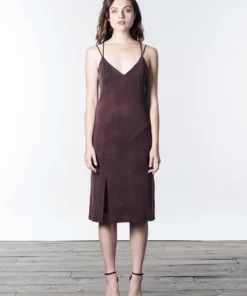 – Midi-length slip dress with front slit