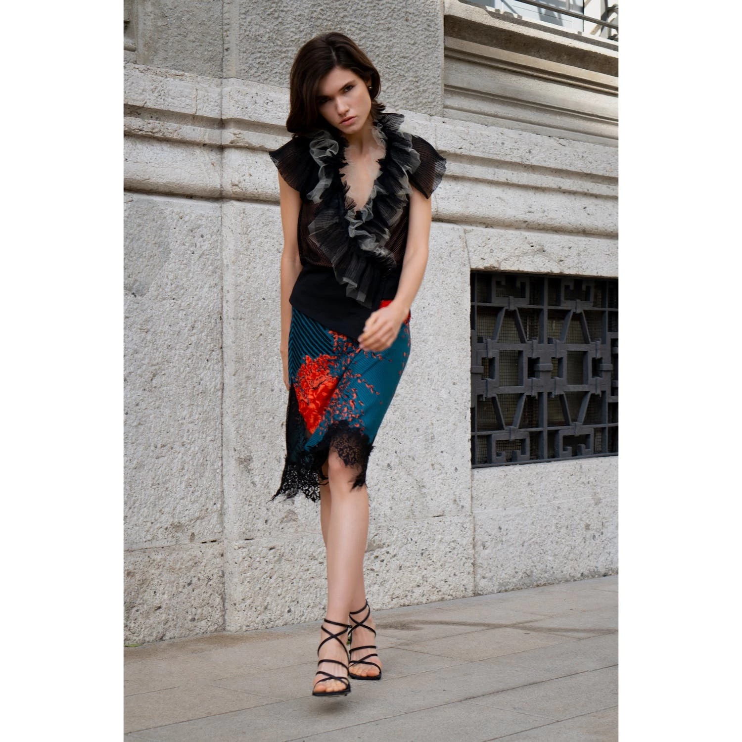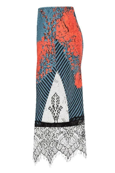 The Magdalena is an elegant bias slip skirt elevated with wide delicate lace. Made from the recycled viscose sateen in the exclusive floral and geometric print, this skirt feels like butta. The bold, yet not too feminine print has a 5″ wide lace trim at the hem. For a peek-a-boo leg effect, they added a lace insert to one side without being too risque. With a sturdy, but slim elastic in the waist, you can simply slip her up and pair her with any summer top. French seam finishes.