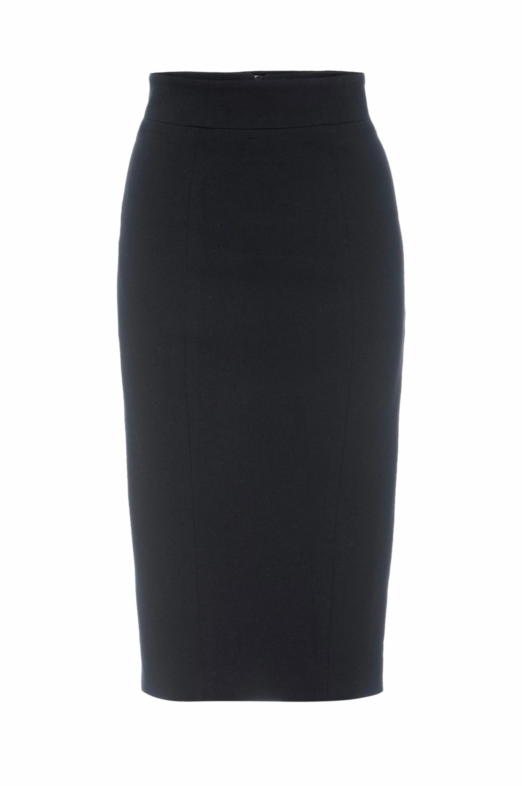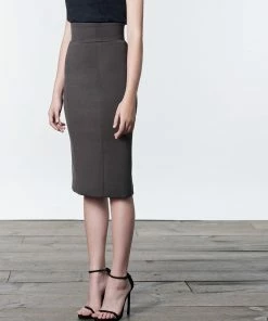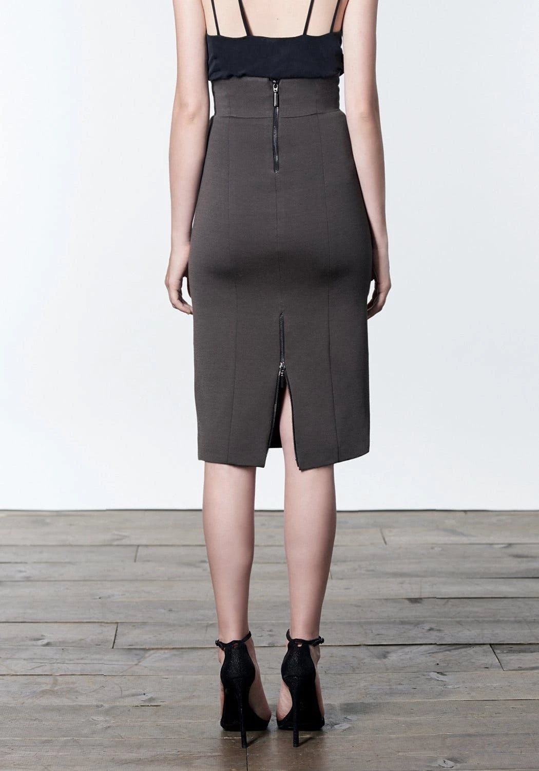 Curve hugging, high waisted, below-the-knee, cinch you in pencil skirt with back metal zipper detail at closure and slit. The back zipper slit allows you to make your skirt as proper or daring as you choose to be.