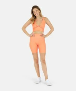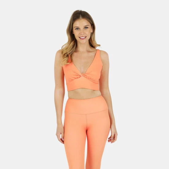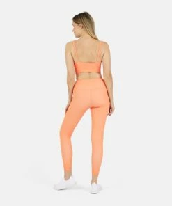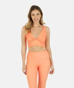 This fully lined racerback sports bra features the perfect coverage and support. Subtle pop of color with a contrast orange waistband. Pair with this Ada Organic Cotton Twist Around Sports Bra for a perfect go-to workout outfit.