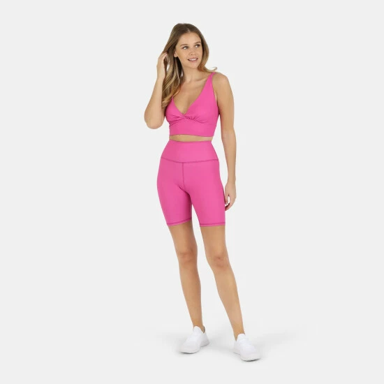 This fully lined racerback sports bra features the perfect coverage and support. Subtle pop of color with a contrast orange waistband. Pair with this Ada Organic Cotton Twist Around Sports Bra for a perfect go-to workout outfit.