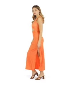 MADE IN THE USAFlattering fit ribbed midi dressTwist front knot detail with v-necklineWaist-cut out with soft elasticKeyhole twisted center frontEasy-to-wear, pull-on stylingUnlined and sleevelessModal / Spandex FabricSlit on one sideDress it up or down!FITModeled in size SmallEmma’s Measurements: Height 5’10″/178cm Waist 24″/61cm Hip 34.5”/88cm Bust 32″/81cmShoulder seam to hem measures approx. 52.5″ in lengthCAREMachine wash in cold water. Lay flat or low machine tumble dry.