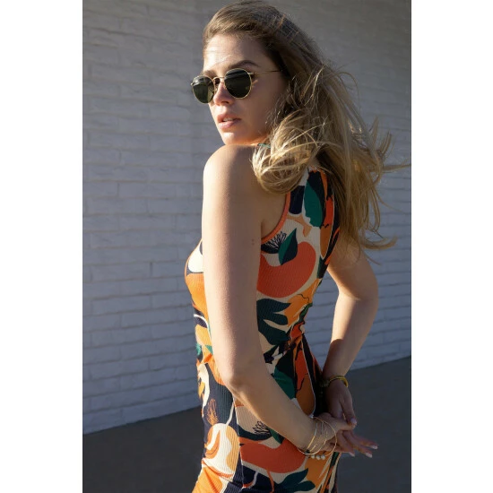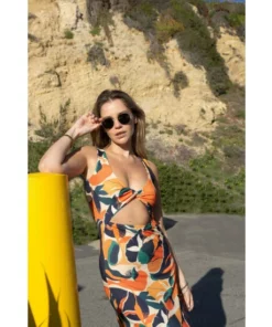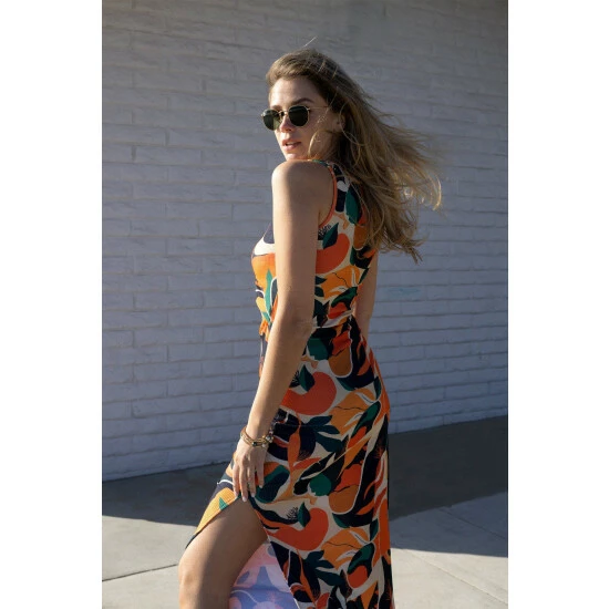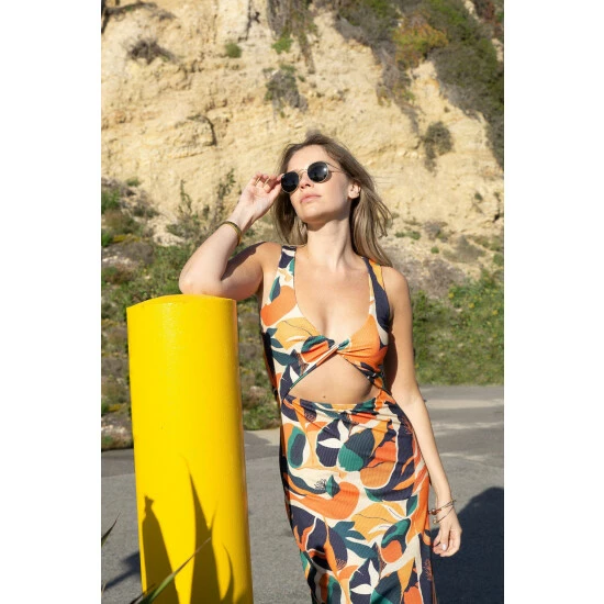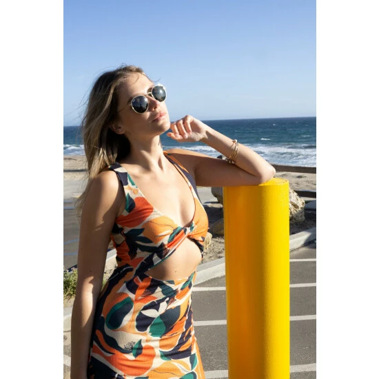 – Flattering fit ribbed midi dress- Twist front knot detail with v-neckline- Waist-cut out with soft elastic- Keyhole twisted center front- Easy-to-wear, pull-on styling- Unlined and sleeveless- Slit on one side- Dress it up or down- Modeled in size Small- Model’s measurements: height 5’10″/178cm, waist 24″/61cm, hip 34.5”/88cm, bust 32″/81cm- Shoulder seam to hem measures approx. 52.5″ in length