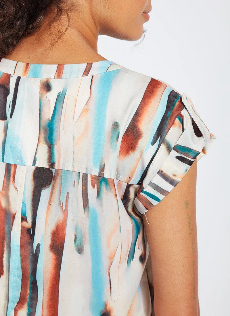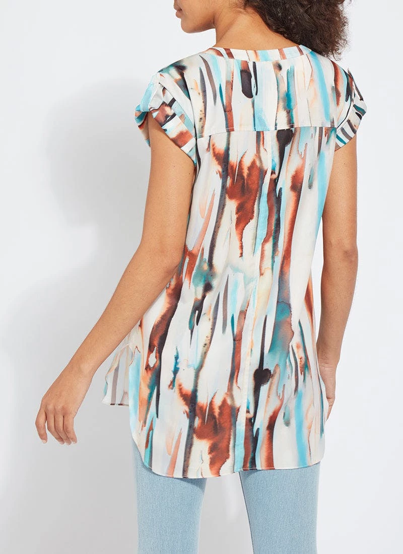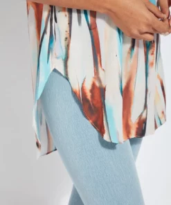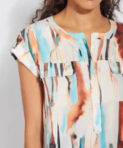 A versatile tunic touting a relaxed fit, the sand castle pull on shirt tucks easily into wide-legged slacks and shorts, or can be worn loose over leggings and denim skinnies. Legging-friendly and crafted from printed lightweight satin, this silky women’s blouse features a front placket, chest pockets with flaps and buttons, short sleeves that are easily cuffed, a center back yoke, and rounded shirttail hem. tuck it into our summer palazzo pants and slip into nude wedges for a perfect work or leisure look. To remove wrinkles upon delivery, simply hand iron or steam.