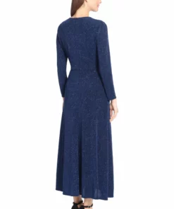 Meet Sky, a shimmering occasion gown. We love her v-neckline with a metal bar detail and ruching on the bodice.