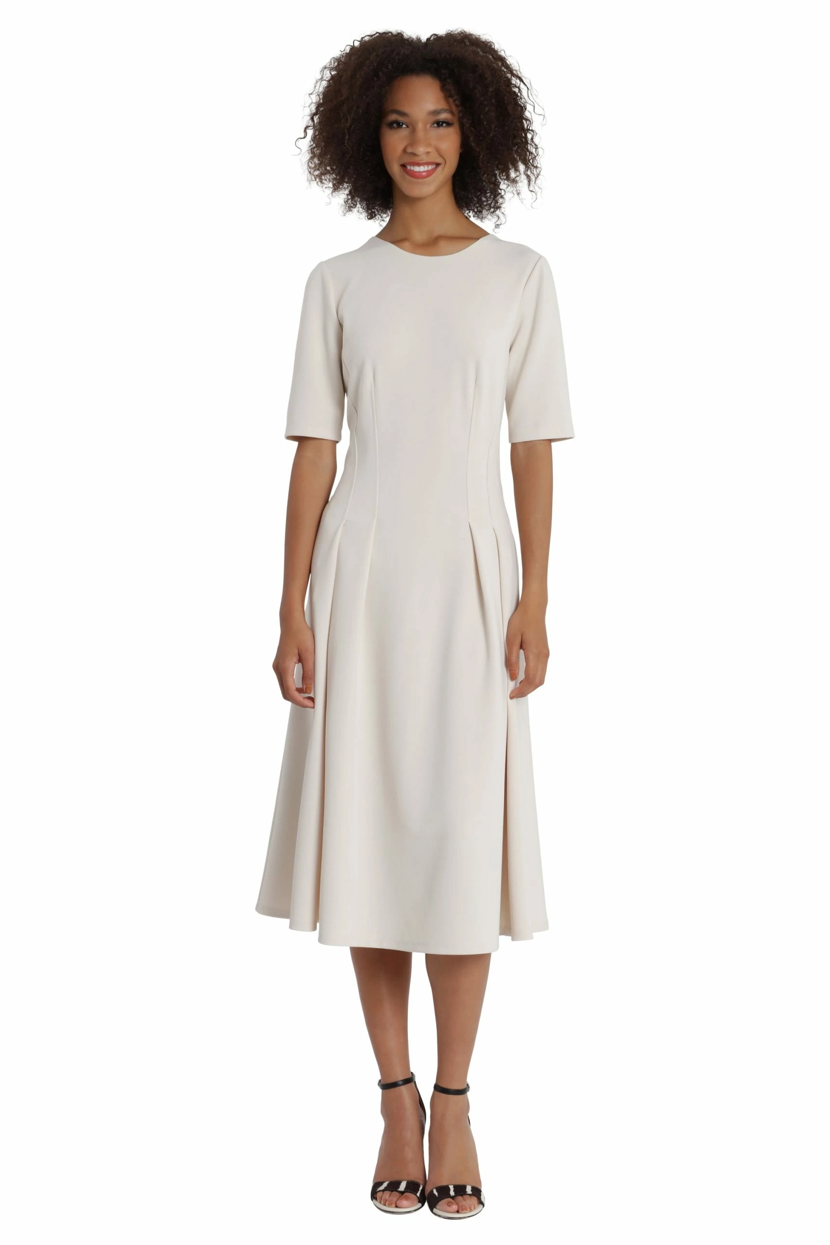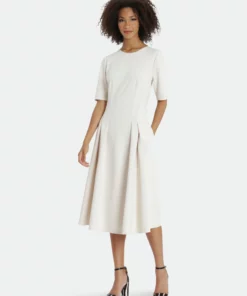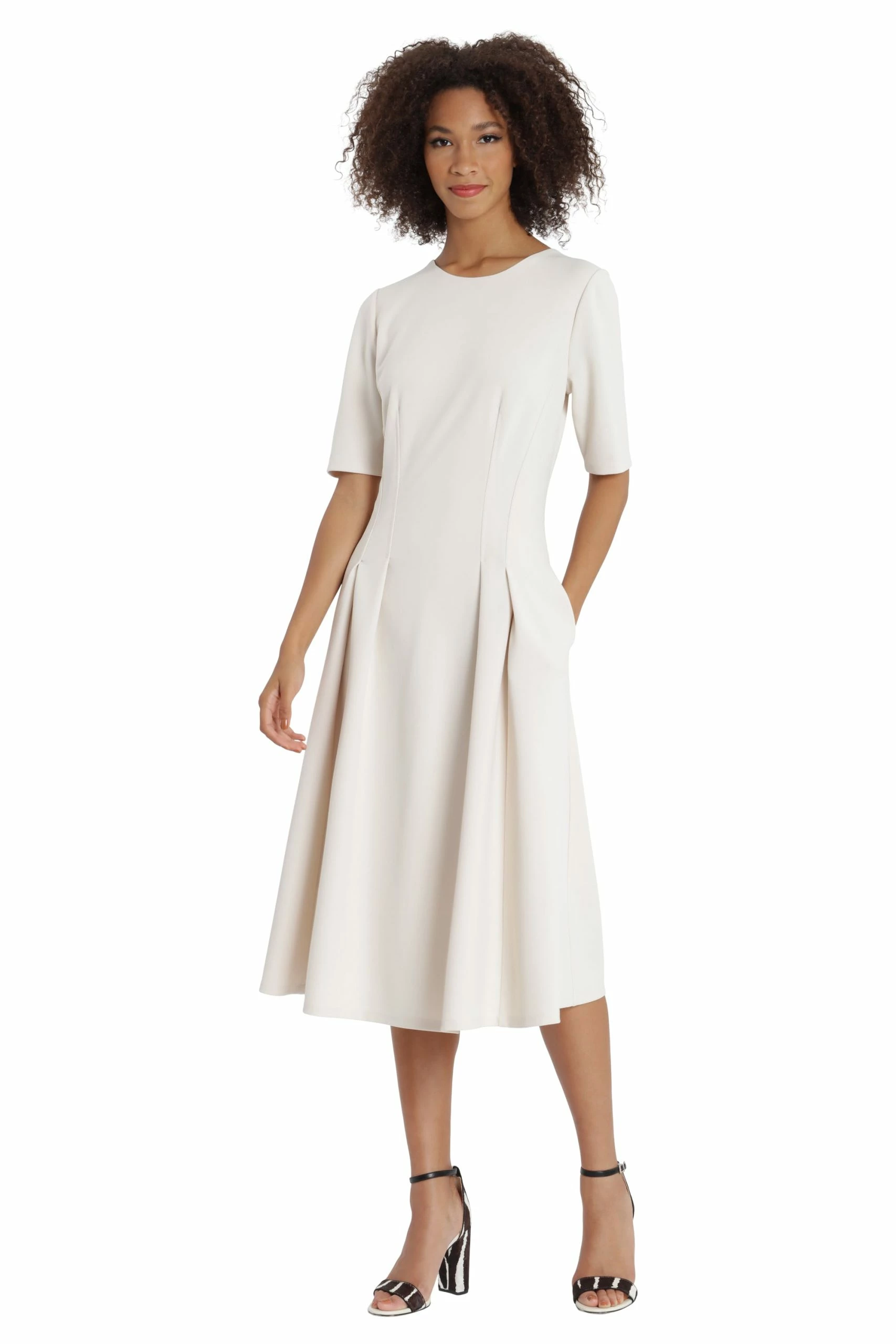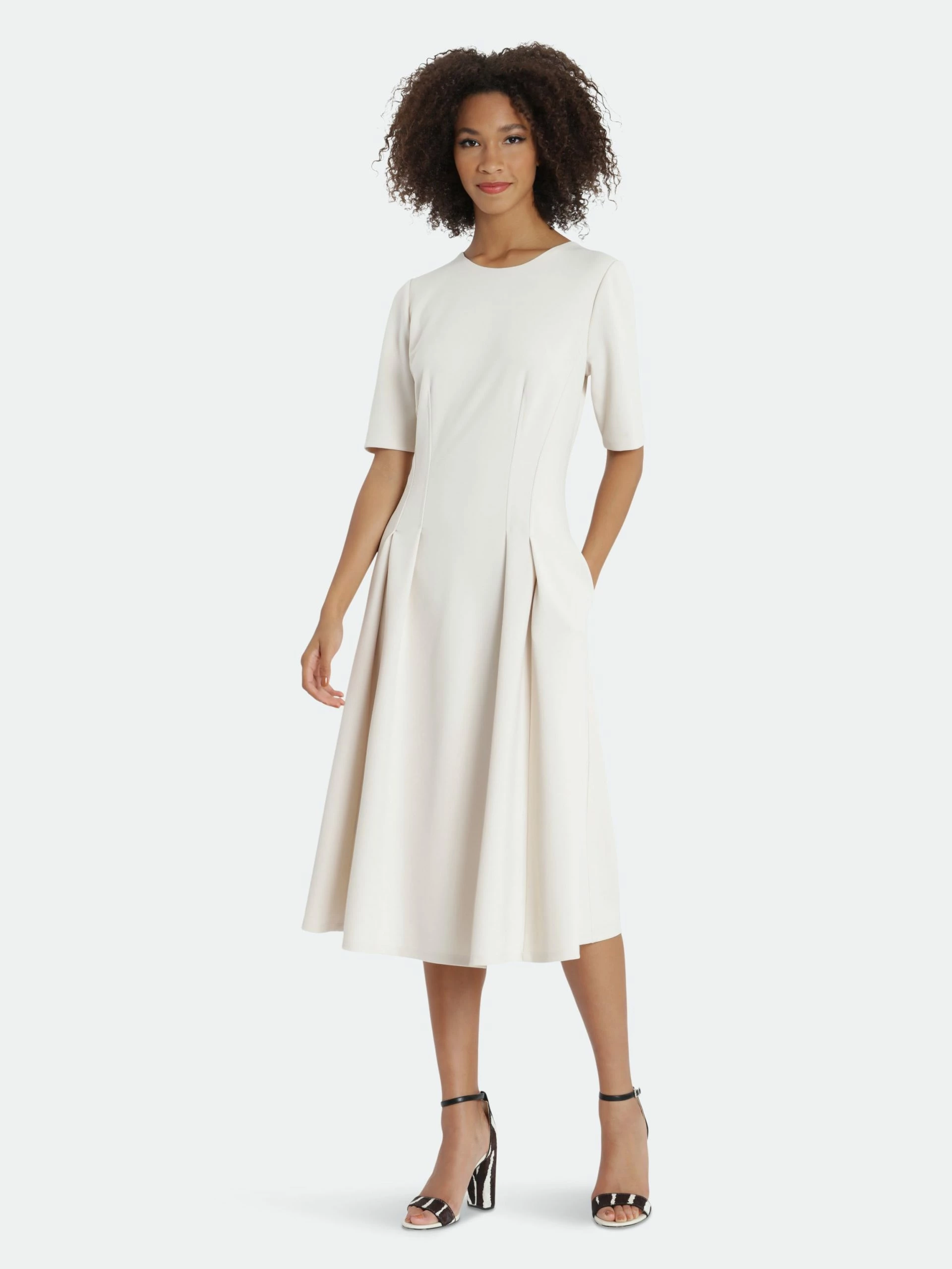 Tresa is the perfect shortsleeve fall dress, she features a crew neckline and a pleated skirt!