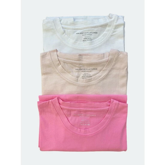 This limited edition gift set contains two Majestic signature cotton short sleeve tees. Cut from super soft cotton with a silk hand the tees have a crew neckline and are cut for a slim fit. The gift pack foldover pouch finishes the gift with a soft tie to wrap up your gift giving effortlessly.