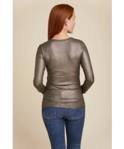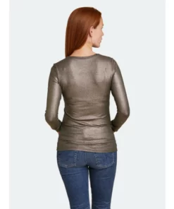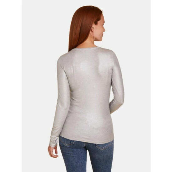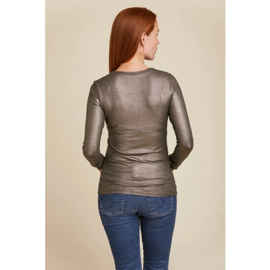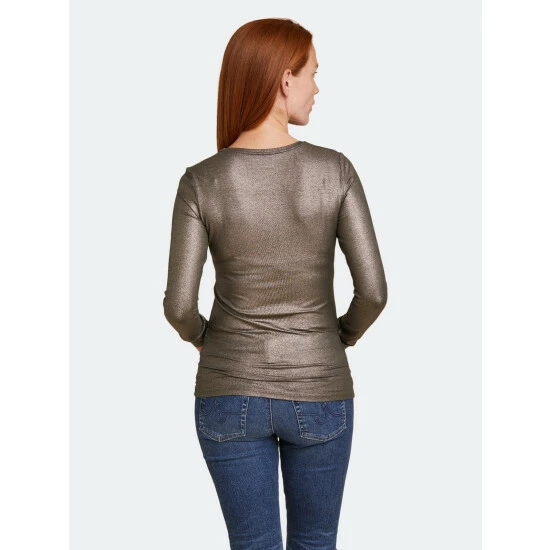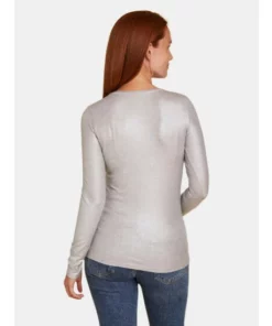 This soft touch long sleeve features a luxurious metallic coating and a fitted silhouette. A unique and sumptuous blend of the highest quality fibres, this metallic crew neck is lightweight and layering-friendly from day to night. Crafted in Portugal.