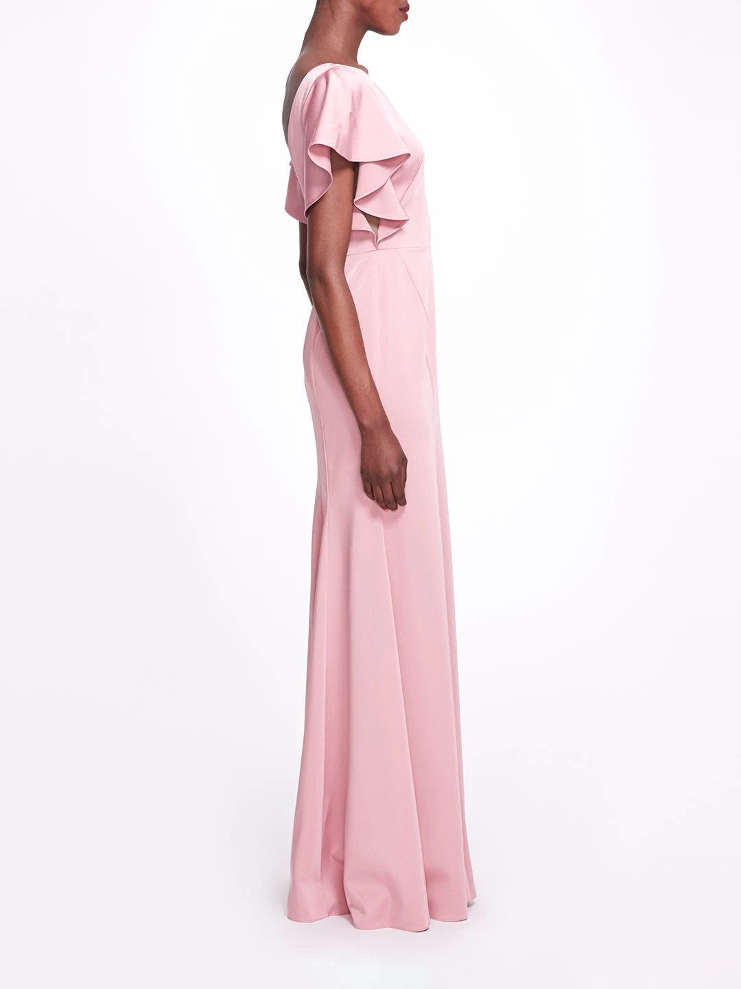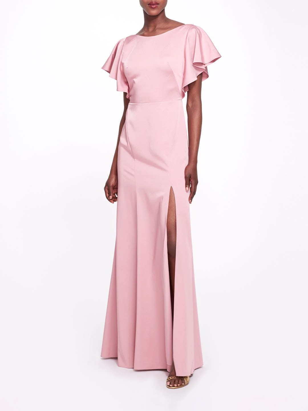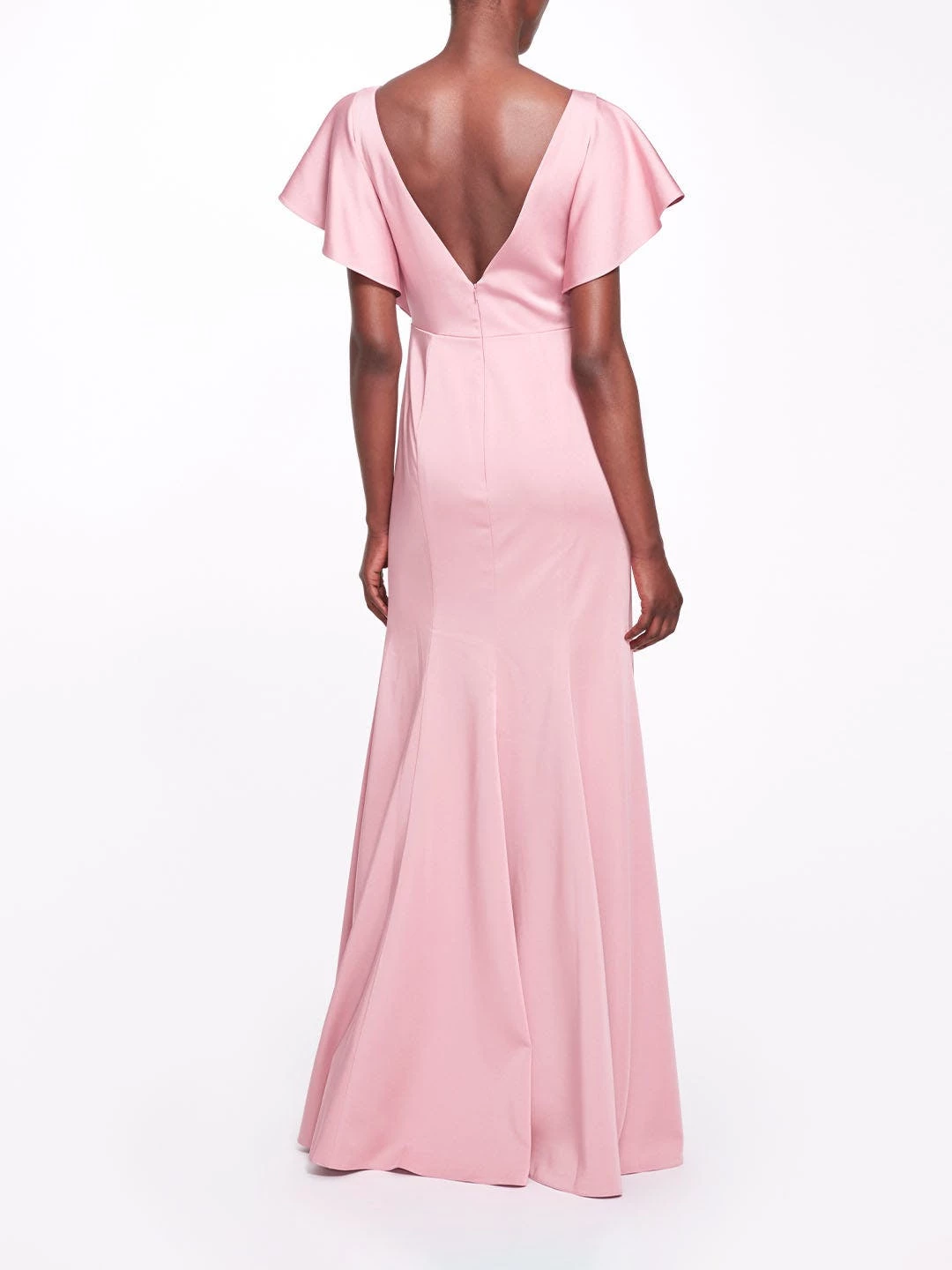 The Modena gown is enchanting for any occasion. Featuring an amorous flutter sleeve, a glamorous silhouette, and an enchanting cinched waist.
