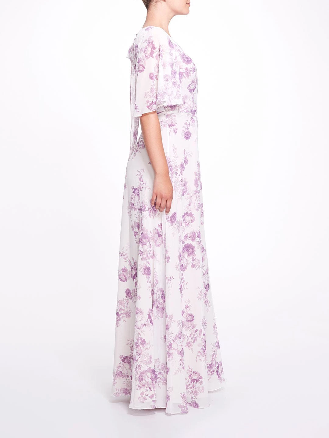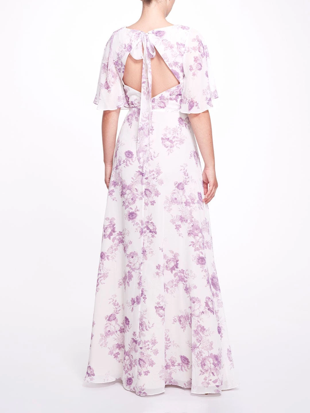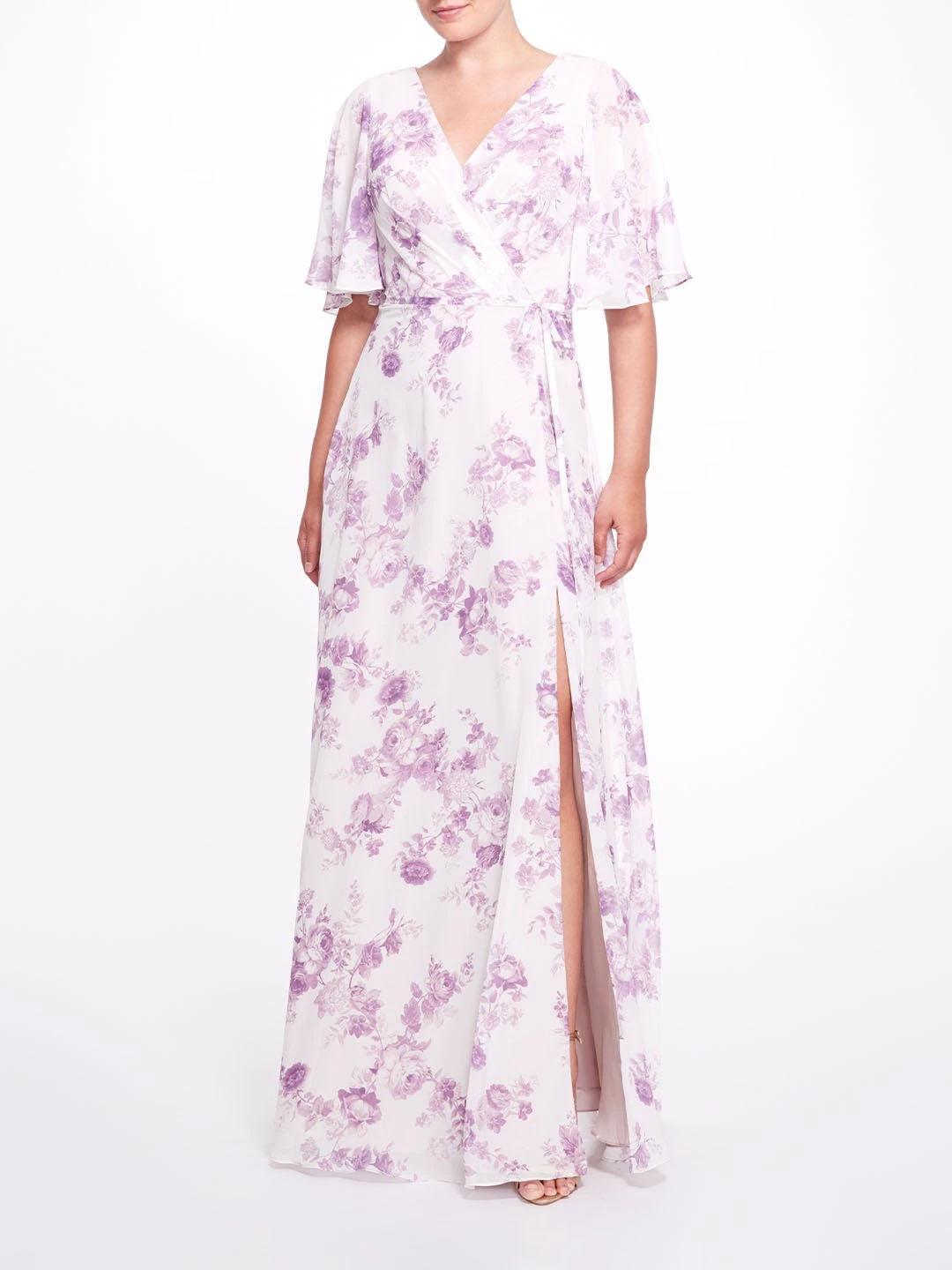 All eyes will be on you at your next event in the Rome gown. Featuring dreamy short flutter sleeves, a charming wrap neckline, an enticing open back with an enchanting bow, and a delightful leg slit, this dress will enchant any room.