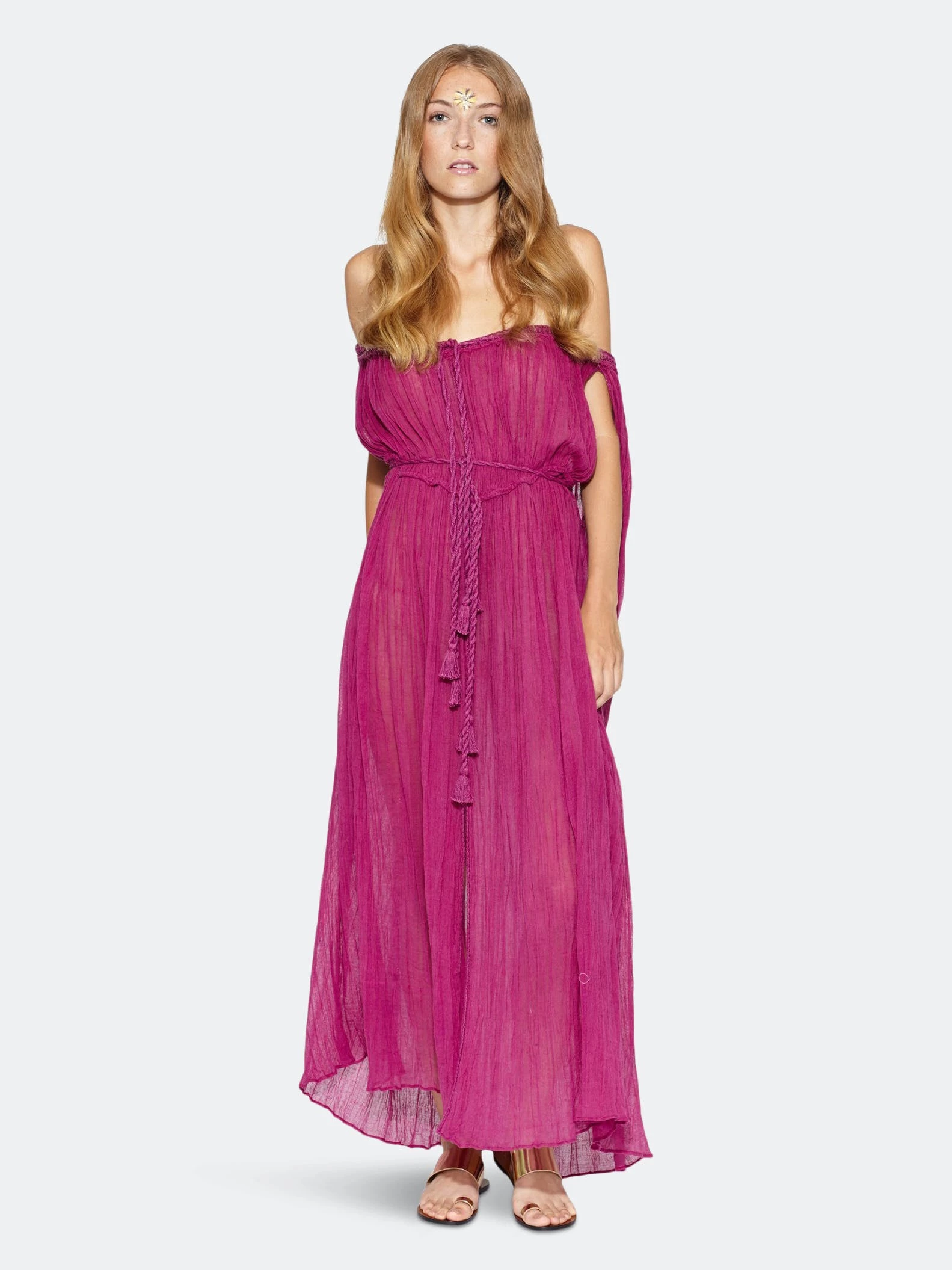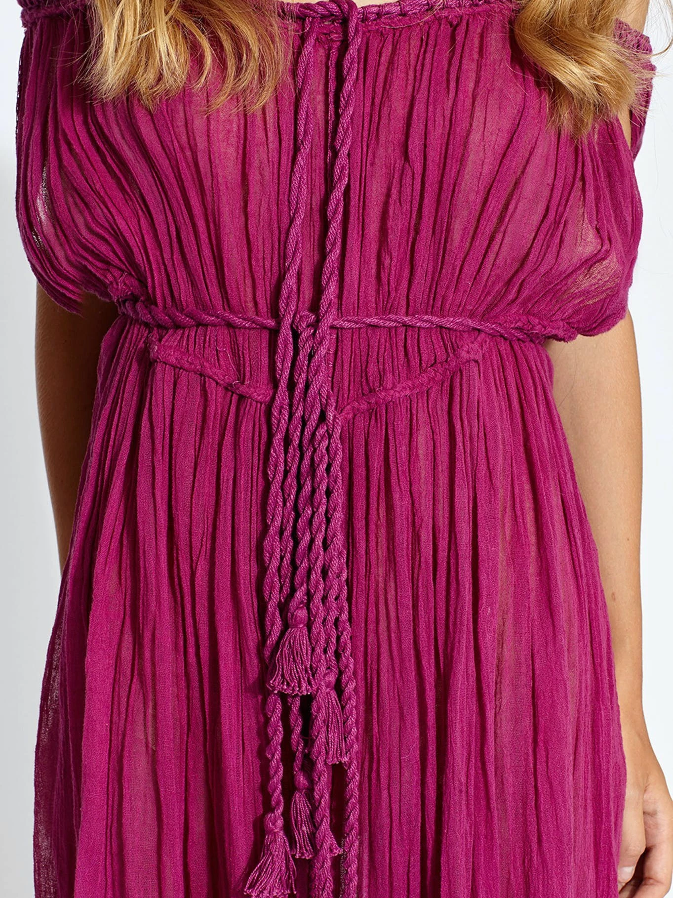 Much like the Roman Queen of the Gods, Juno is fashion royalty. This dress, in a shockingly stylish magic magenta hue, is produced in a filmy, lightweight cotton gauze that’s amplified with movement, making for breezy silhouettes to capture the island breeze, sun, or the nearest camera. With tons of on-trend tassels, folds of fabric, and an ankle-skimming hem, Juno is figure-flattering and ready to be served up with ambrosia courtesy of a dapper Dionysius. Don’t worry, if you’re rocking this dress, he’s sure to seek you out.