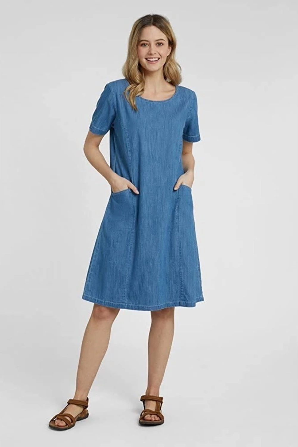 Step into summer in style with the Flora Denim Dress.100% cotton composition, making it naturally lightweight and breathable, in a relaxed fit, with a crew neckline and extra cover thanks to the UV protection.