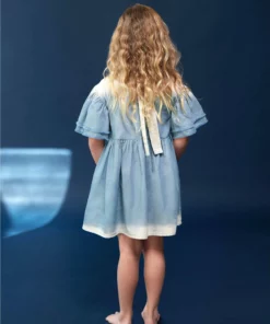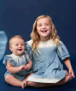 This rad dress is featuring elbow length raw finish ruffle sleeve, generous shirring at empire waist and dip-bleach finish. Perfect for baby’s first special event or family pictures but comfortable enough for everyday adventures.
