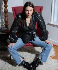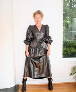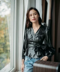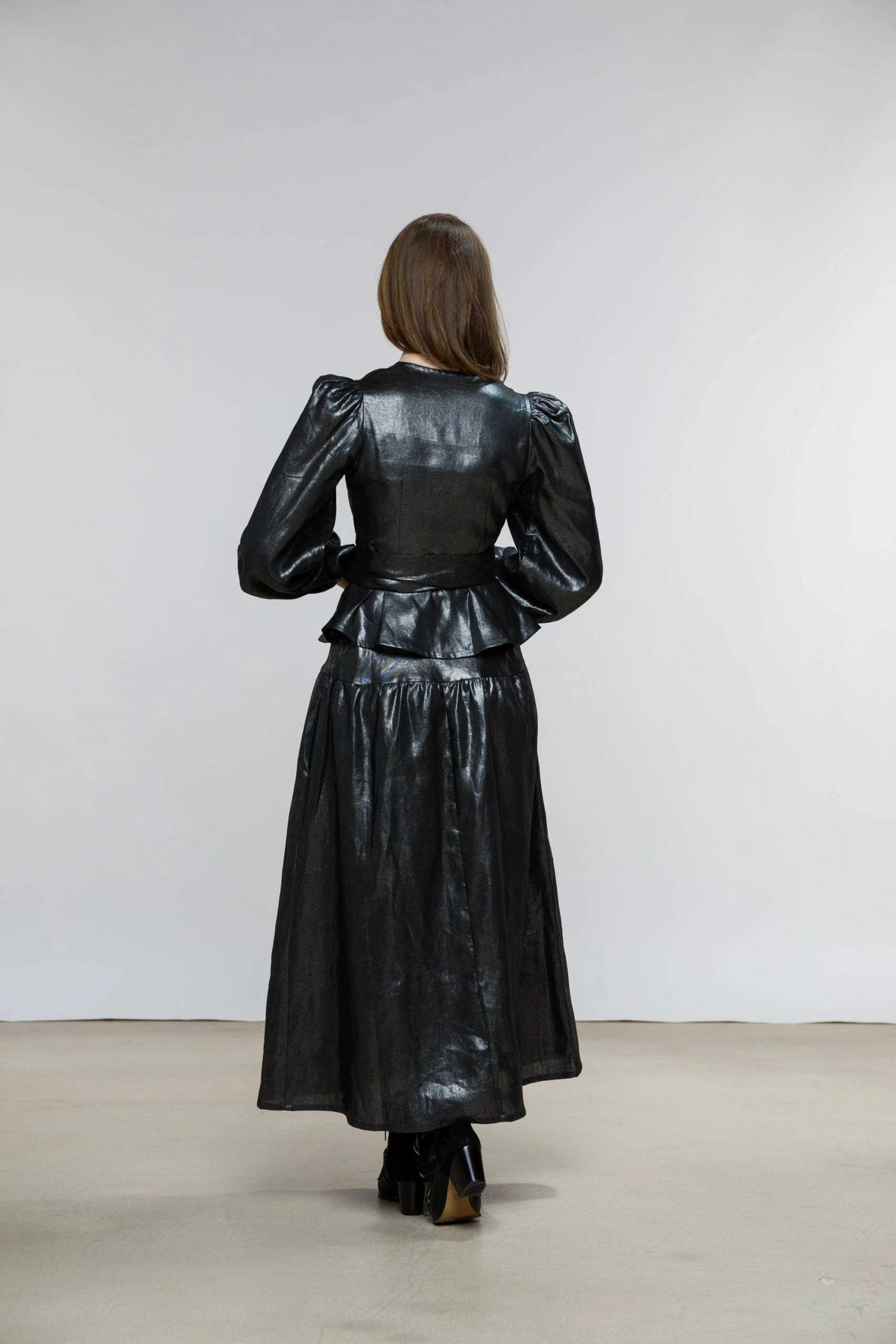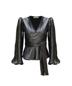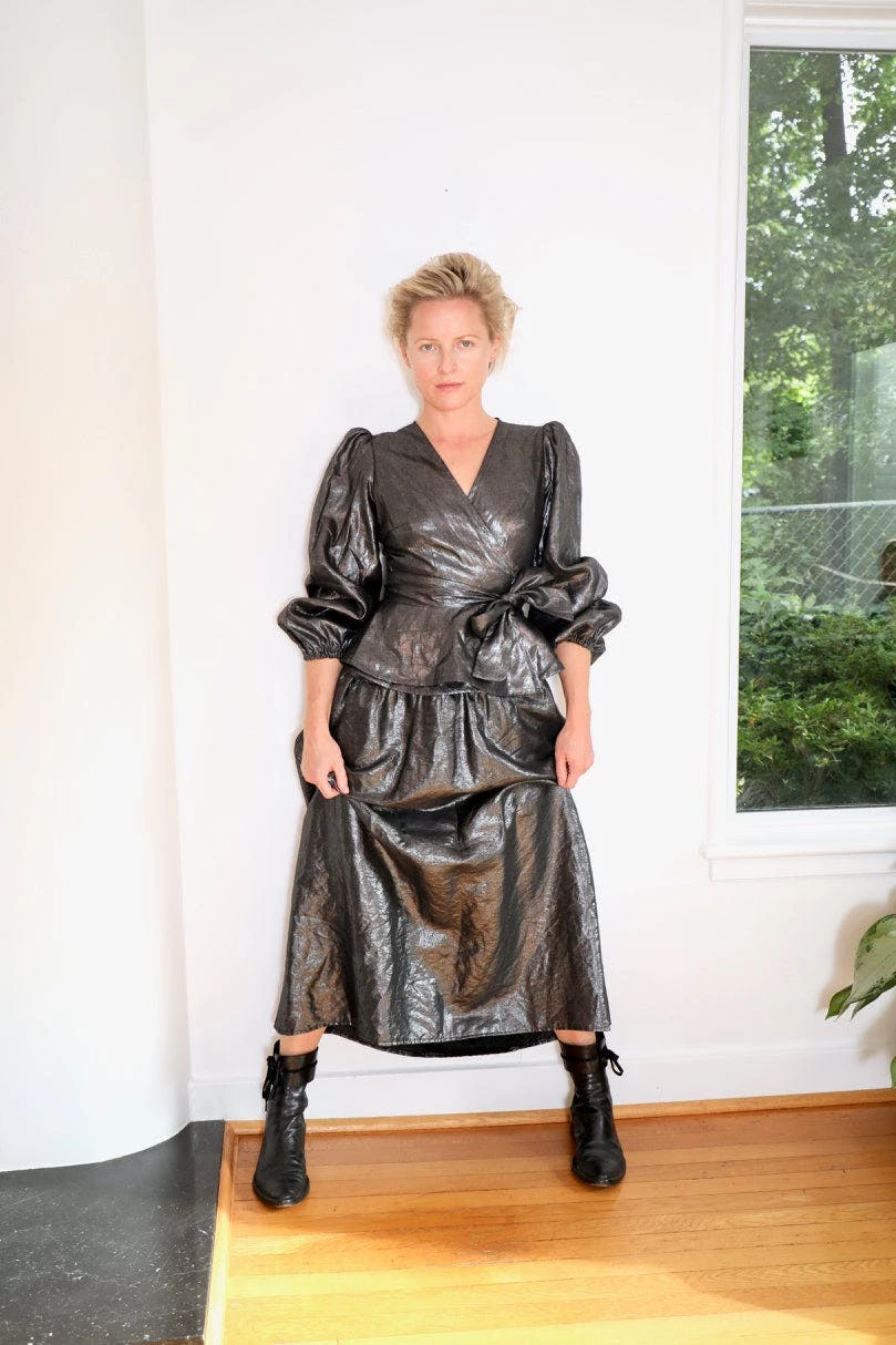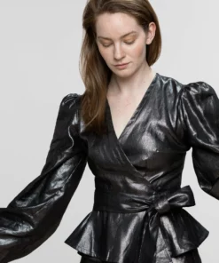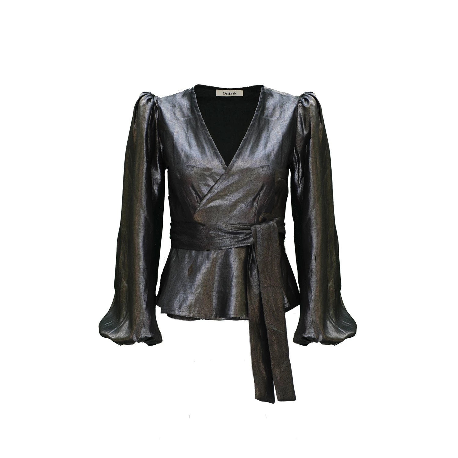 Lou is a wrap top with long, luxuriously-pooled puff sleeves and peplum. She looks great wrinkled or crisp and she is equally at ease with your old jeans or a sleek skirt. She is made from opulent, durable, and natural 100% linen with a metallic coating.Lou’s a lady who’s part billowy-bohemian and part metallic vixen.