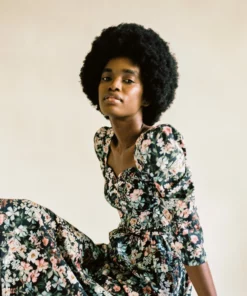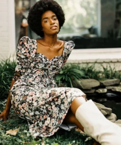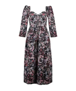 Violet has a modern empire silhouette and is midi in length with (comfy-cotton) corset-style seams on her bodice and a gathered skirt. She has slightly puffed shoulders, 3/4 sleeves, pockets), a sweetheart neckline at the front and a flirty squared-off neckline at the back.She loves being paired with boots for a romantic run through the countryside, sneakers to go to the morning market and heels and chandelier earrings for a candle-lit dinner party.