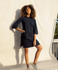 Violet has a modern empire silhouette and is midi in length with (comfy-cotton) corset-style seams on her bodice and a gathered skirt. She has slightly puffed shoulders, 3/4 sleeves, pockets (YES), a sweetheart neckline at the front, and a flirty squared-off neckline at the back. She loves being paired with boots for a romantic run through the countryside, sneakers to go to the morning market, and heels and chandelier earrings for a candle-lit dinner party.