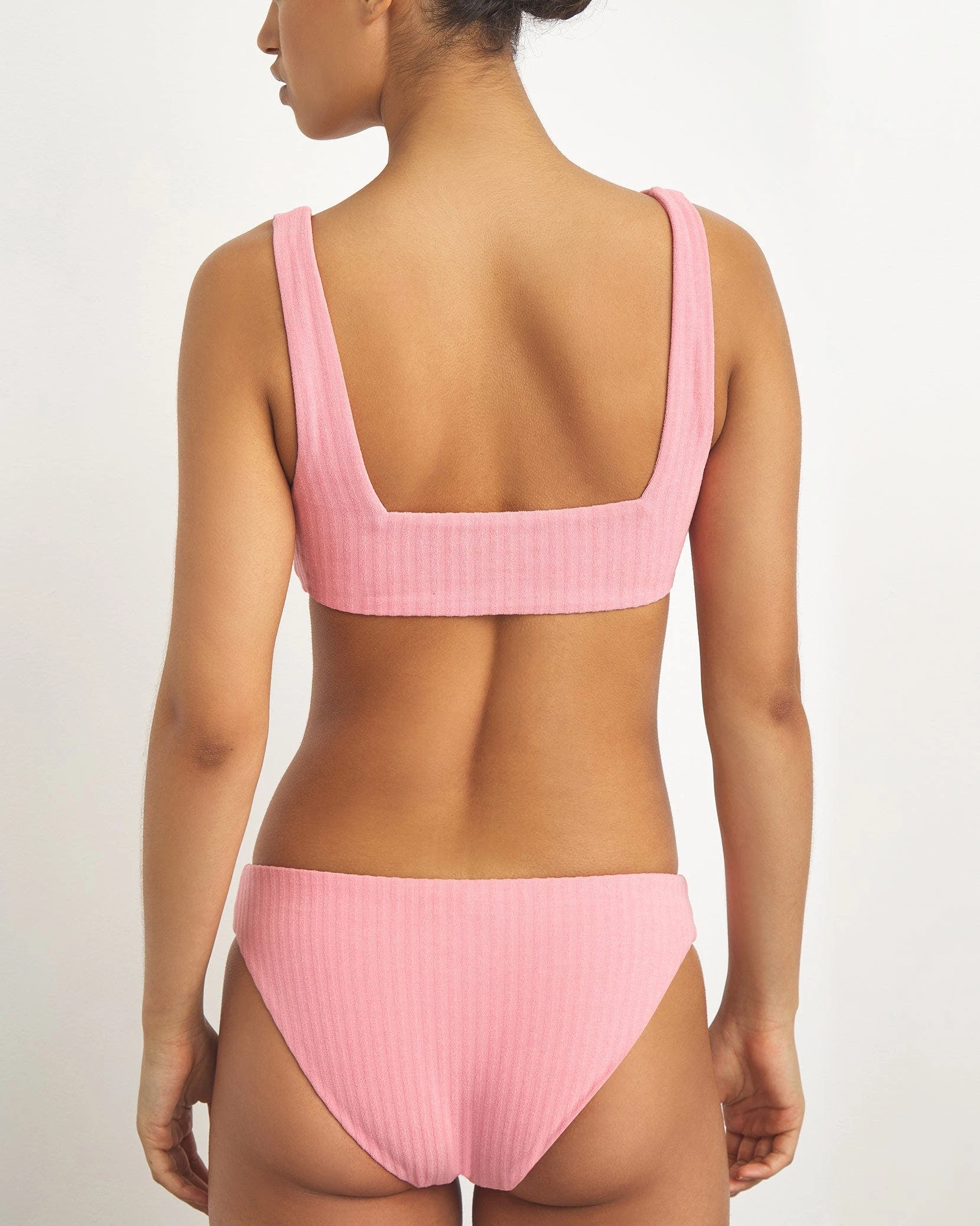 The amber bikini top pulls on, making it an especially comfortable silhouette. It has wide shoulder straps and a square neckline.The amber bikini top pairs well with the lily bikini bottom , camp collar eyelet shirt and eyelet beach boxer.
