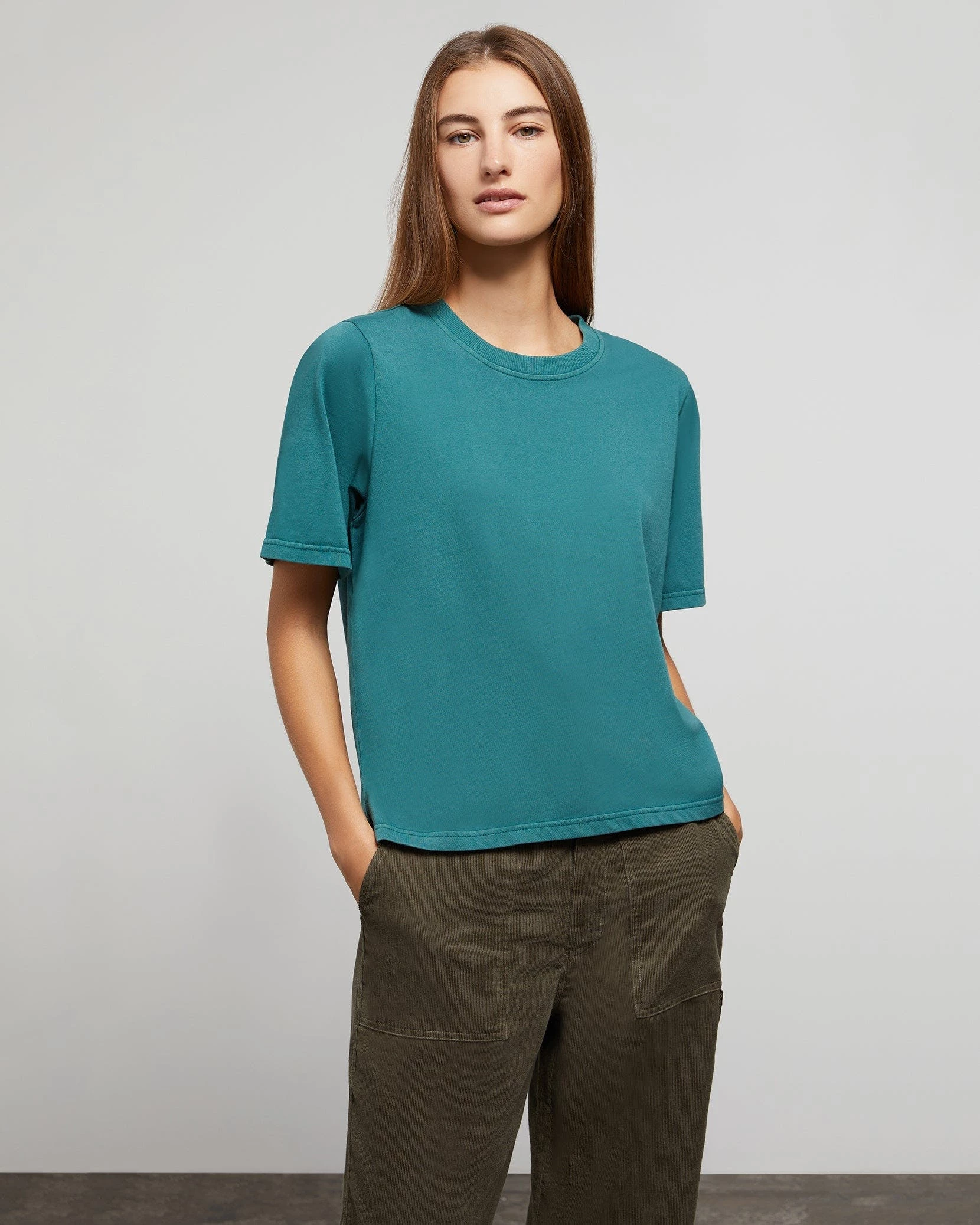 Garment-dyed to create dimensions and a lived-in feel, this substantial Jersey Tee is made from soft cotton. It’s cut for a boxy, oversized fit and finished with ribbing at the crewneck collar.The Garment Dye Jersey Tee pairs well with the Garment Dye Elastic Chino Pant.