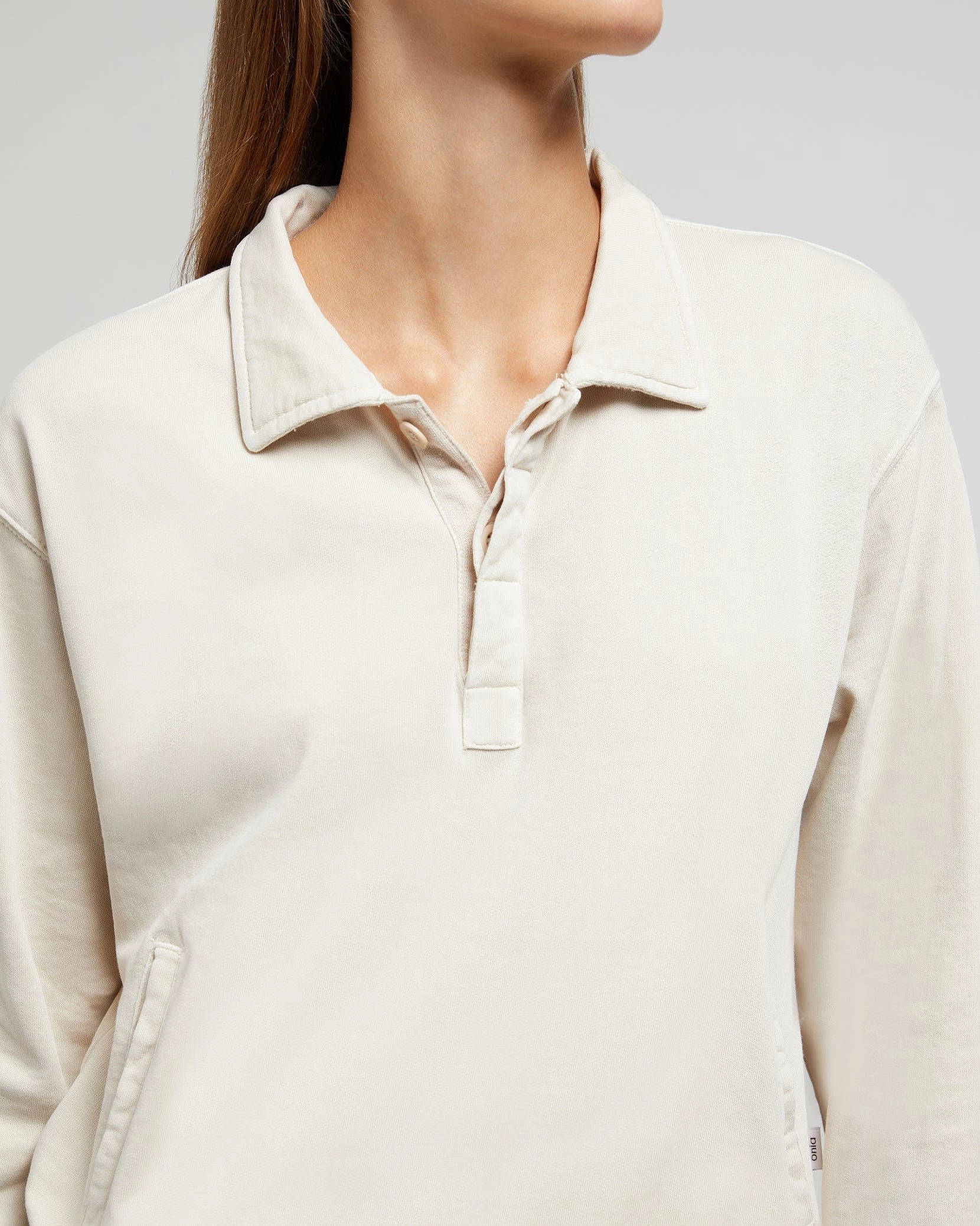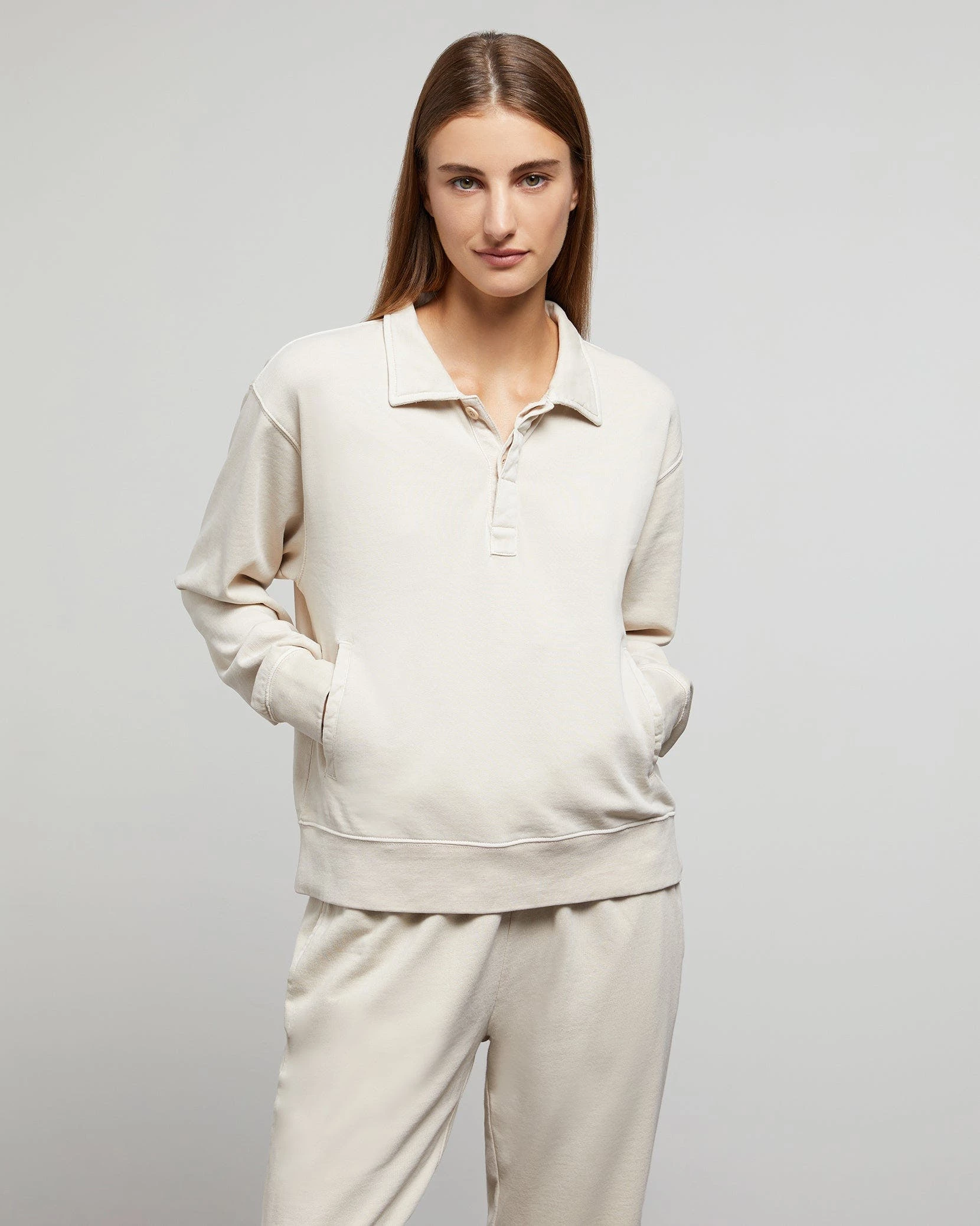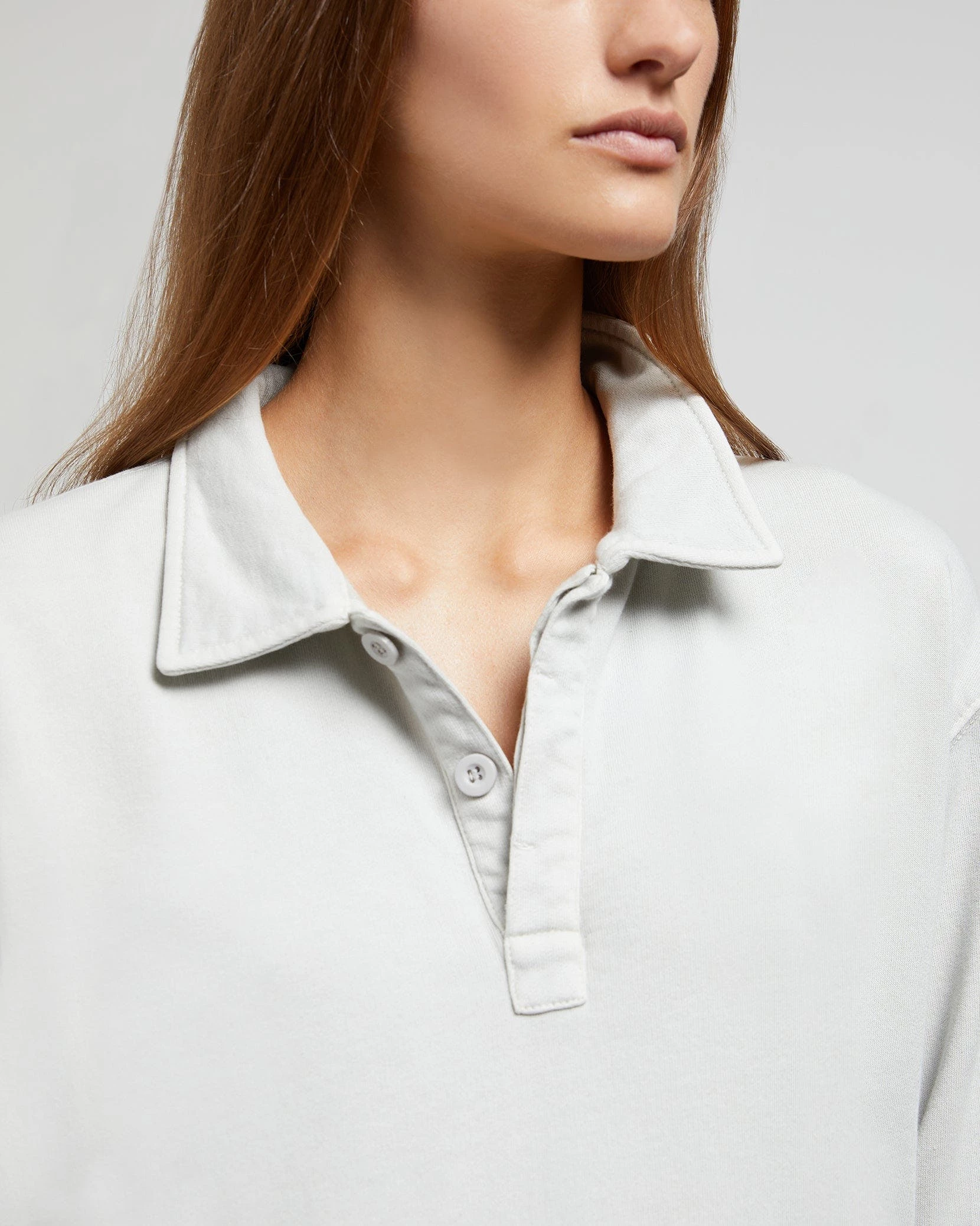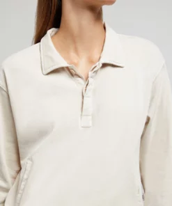 These garment dye terry polo is made from soft cotton that’s been cut for a relaxed fit and detailed with welt pockets, a covered placket and finely ribbed trims. The style is pre-washed to soften its handle.The garment dye terry polo pairs well with the wide leg corduroy carpenter pant.