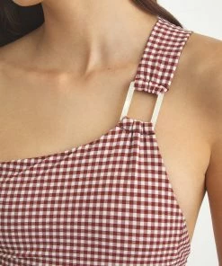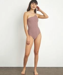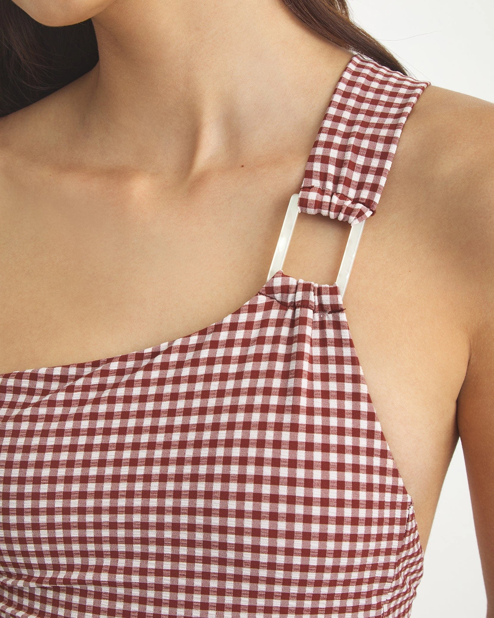 The asymmetric one-shoulder design of the jenna one piece gives it a timelessly modern feel. It’s been made of seersucker swim fabric with a slightly raised texture and features a square resin-horn embellishment at the strap for a hint of detail.