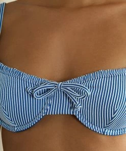 Especially flattering to the décolleté, the Marilyn is trimmed along the top with delicate ruching and centered by a string-tie bow. The balconette features adjustability at the back and slim straps, as well as supportive underwires making it ideal for slightly larger bustlines.The Marilyn Bikini Top pairs well with the Daisy Bikini Bottom.Minimal detailing creates maximum impact on this premium stretch fabric. It features a subtle ribbed texture that sculpts and smooths for a flattering fit. The material is tested repeatedly to ensure complete coverage and opacity even when wet. The result is a sophisticated twist on a timeless swimwear look.