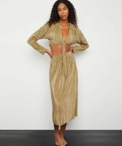 Fashioned from soft plissé fabric with pleated folds, the Pull-On Midi Skirt is designed to move effortlessly with every step. It has a flexible waistband for a comfortable fit and falls to a below-the-knee hem.The Pull On Plisse Midi Skirt pairs well with the Cropped Plisse Tie Front Top.