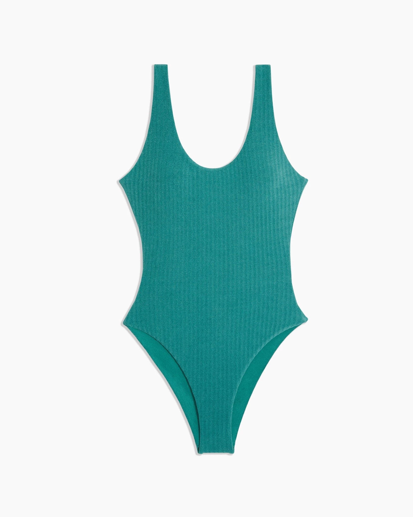 Rachel updates one of Onia’s most popular maillots — with a higher leg, lower-cut neck and slimmer straps to emphasize its sexy feel. Finished with a scooped, minimal-coverage back, it streamlines the figure to create a lean, elongated silhouette.