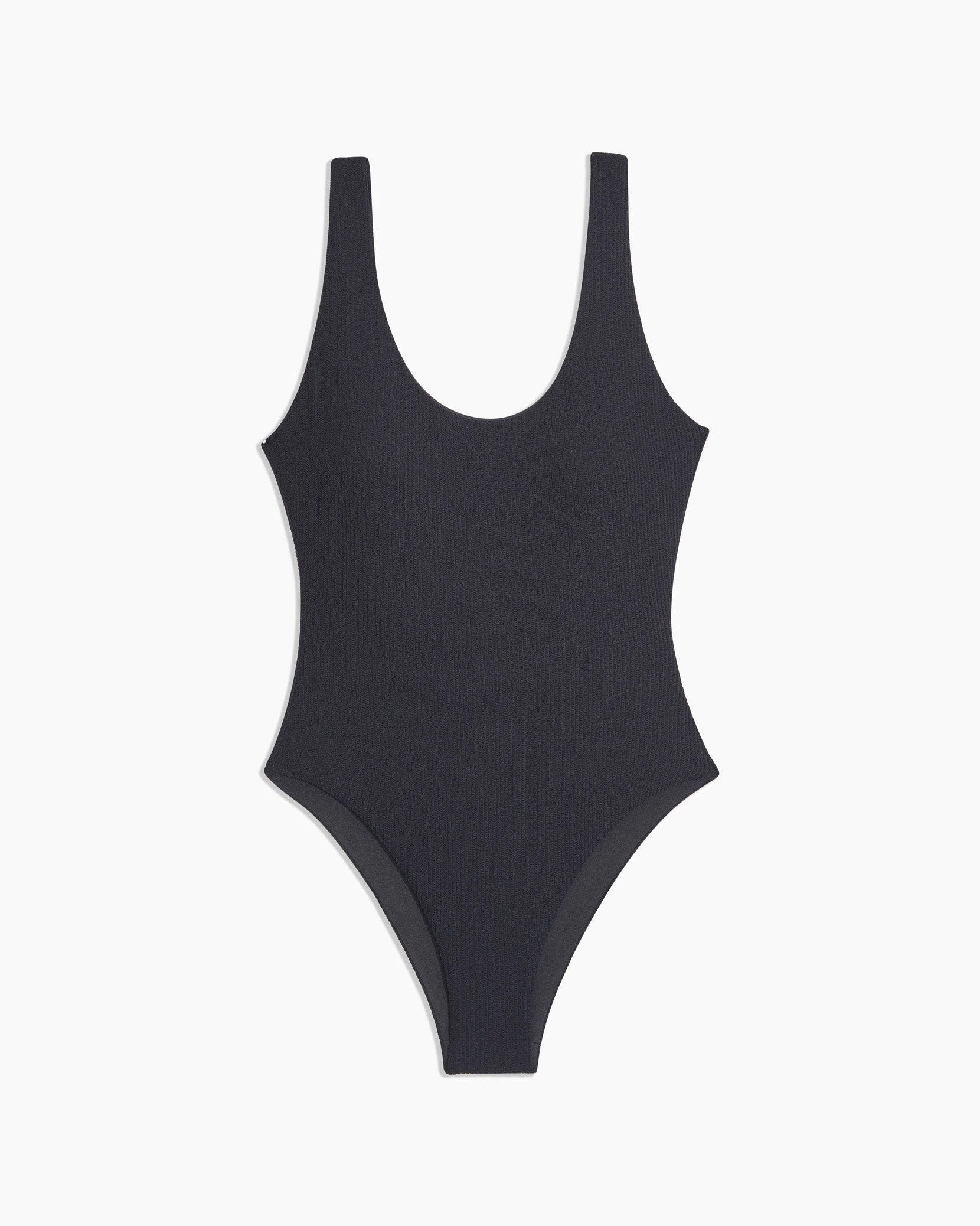 Rachel updates one of Onia’s most popular maillots — with a higher leg, lower-cut neck and slimmer straps to emphasize its sexy feel. Finished with a scooped, minimal-coverage back, it streamlines the figure to create a lean, elongated silhouette.
