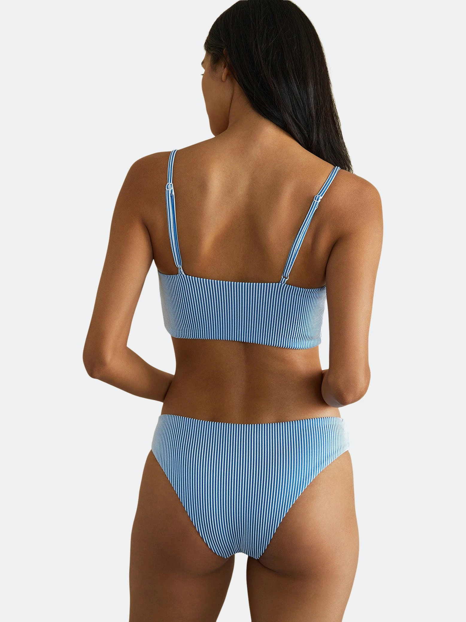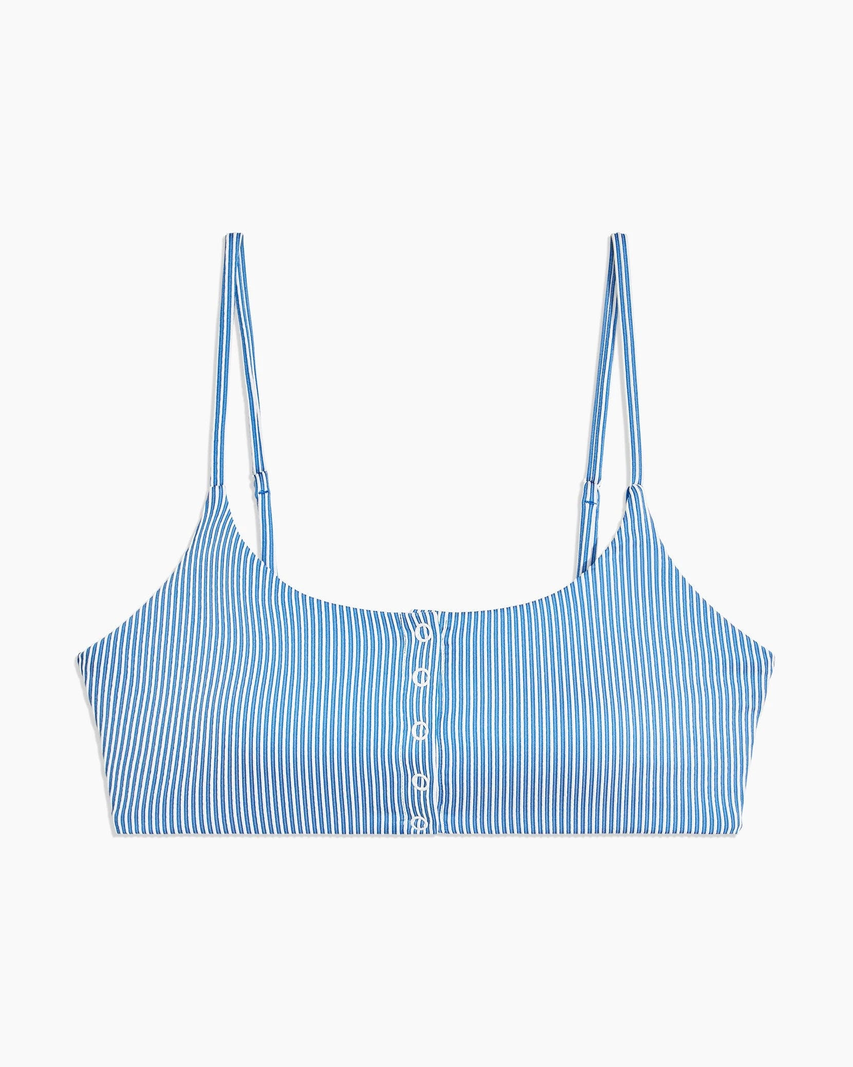 Designed without inner wires or padding for comfortable hold, the Veronica Top is a cropped tank style with adjustable straps and ring-shaped snaps that decorate the front closure.