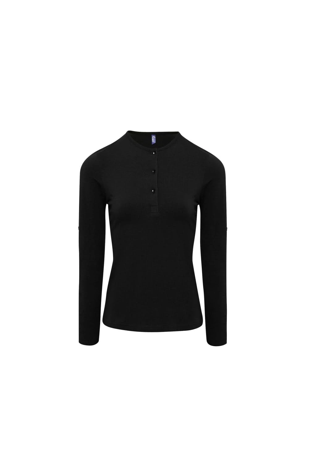 – Long sleeve tee.- Features roll sleeve capabilities with button tab on the inside of the sleeve to secure in place.- Round neck style with a three button placket.- Twin-needle stitching to the hem and cuff.- Washing instructions: machine washable at 40 degrees..- Gender: Unisex Adult