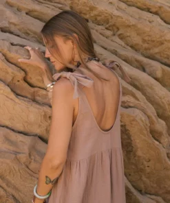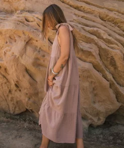 The gauze adelaide dress is your perfect warm weather staple. The adjustable tie shoulders and tiered full silhouette make it a great easy day dress – grab a straw bag and head to your farmer’s market or throw it over your swimsuit for a beach day.
