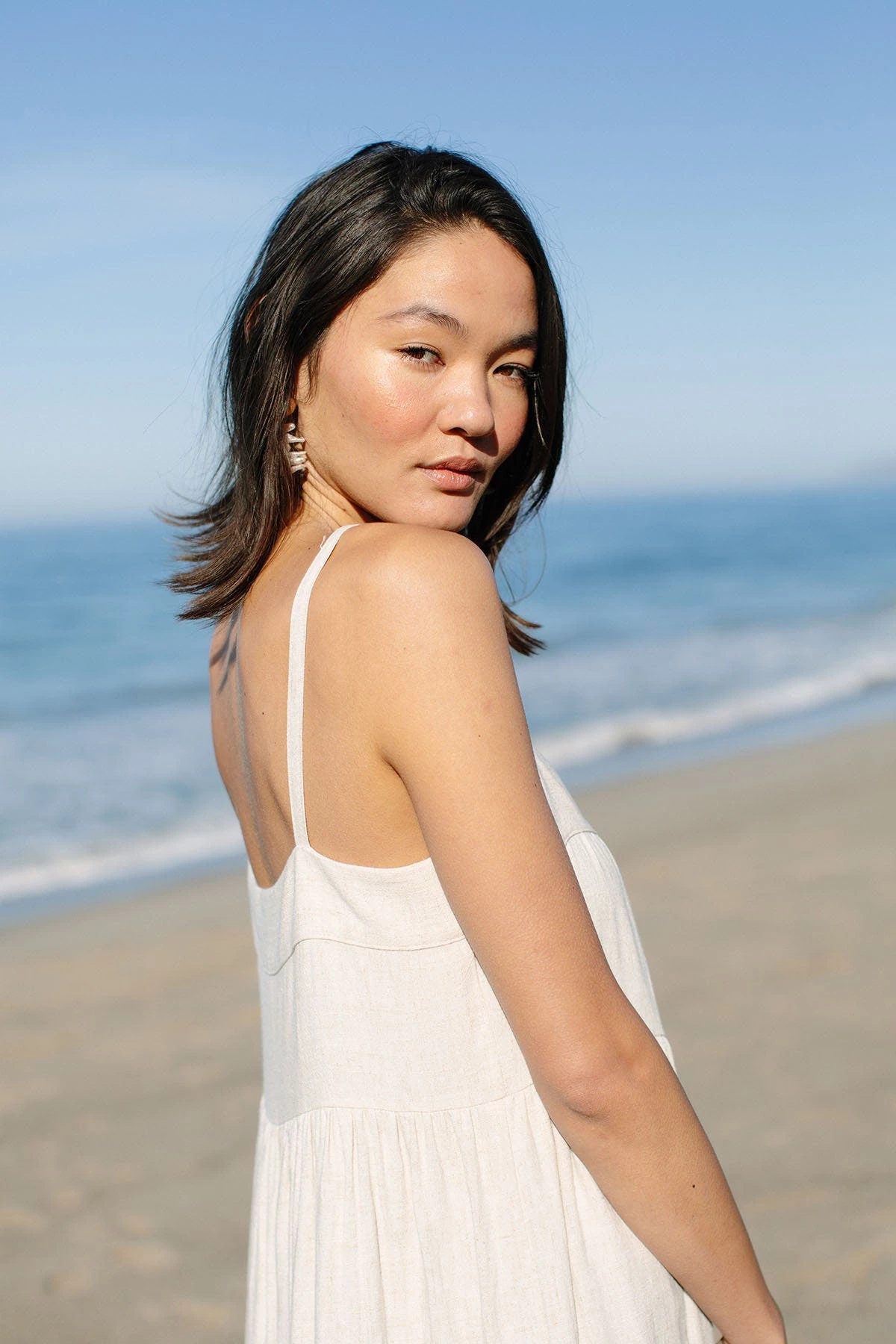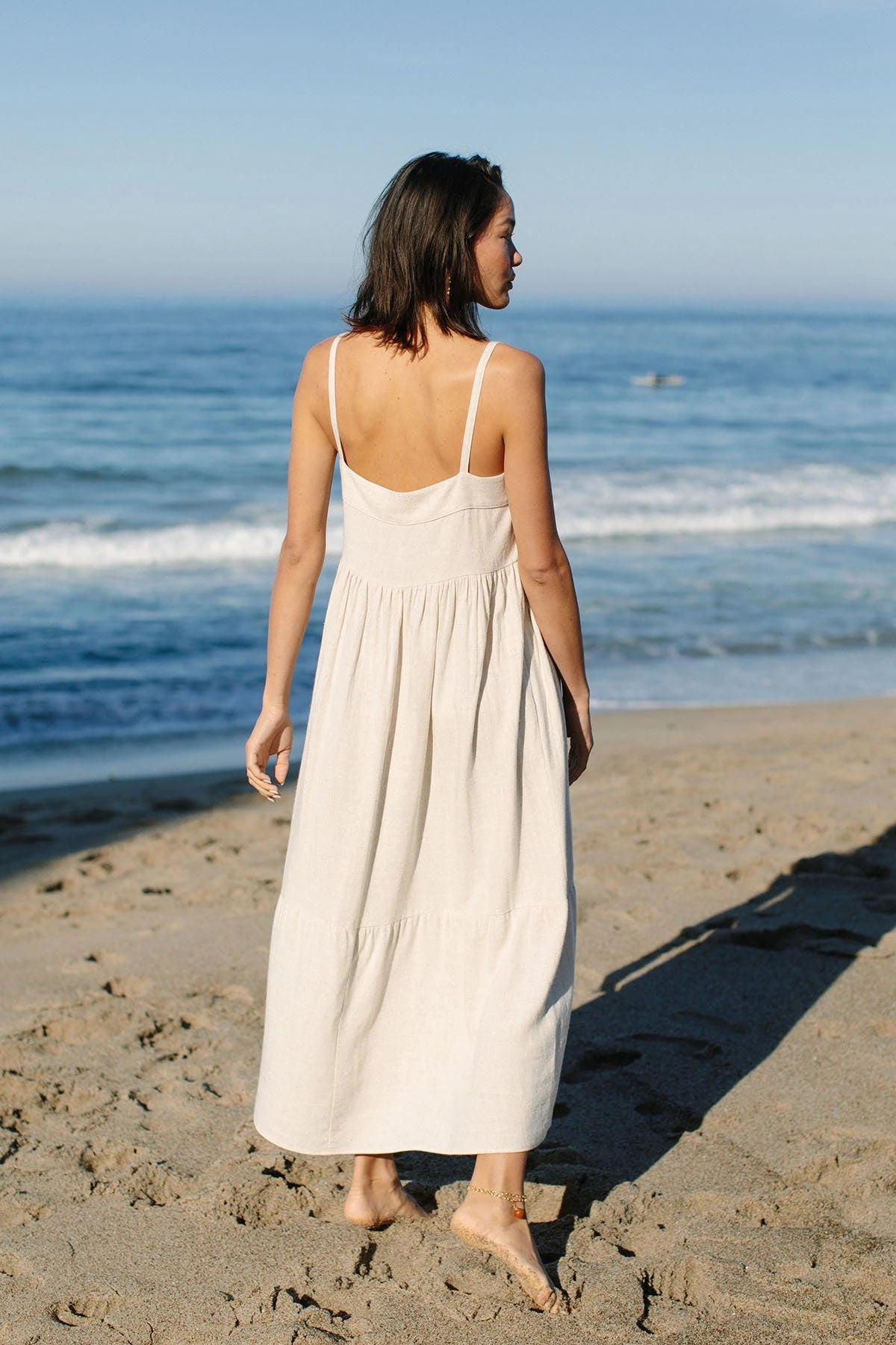 The Syd dress features a square neckline, wide-set straps, a generous body and feminine tiers. It is an easy everyday dress when worn with flat sandals but is also a great warm weather event dress. Wear it with a heel and a great earring for a spring or summer wedding.