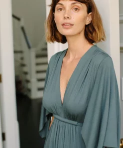 This best-selling long caftan dress flatters all figures, with extra volume that creates drama and flowing movement. Intentional raw hem for easy alterations- no sewing necessary.