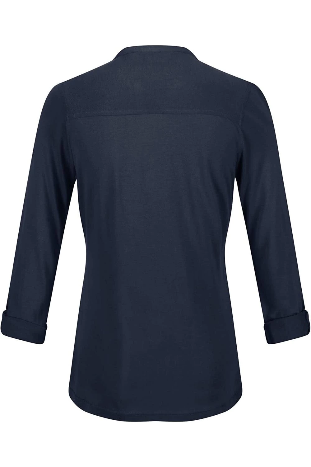 – 100% viscose.- Fabric: jersey, soft touch, viscose.- Design: logo, plain.- Pockets: 2 patch pockets, chest.- Sleeve-type: 3/4 sleeve.- Hem: shaped.- Neckline: v neck.- 1 button placket, button tab, turn up sleeves..