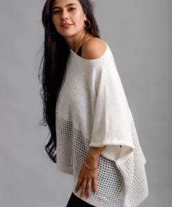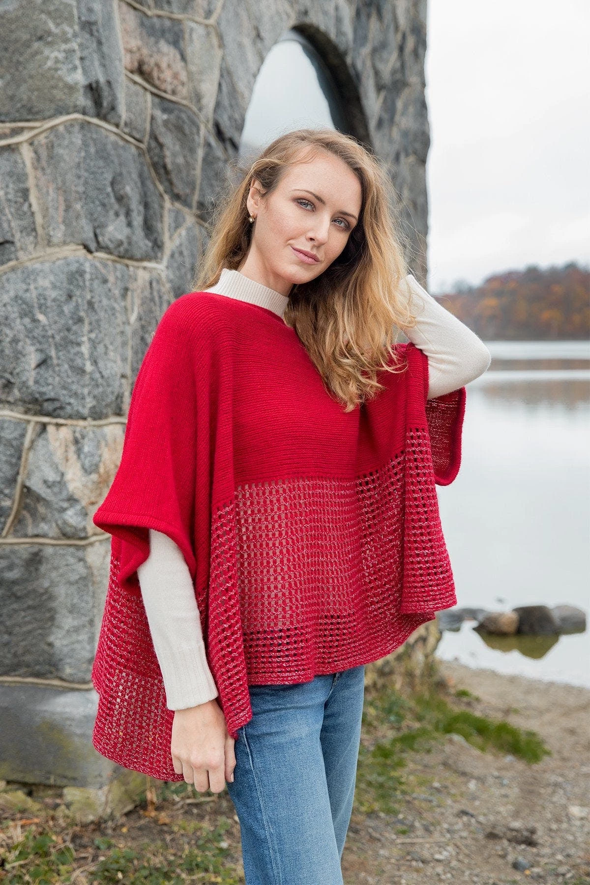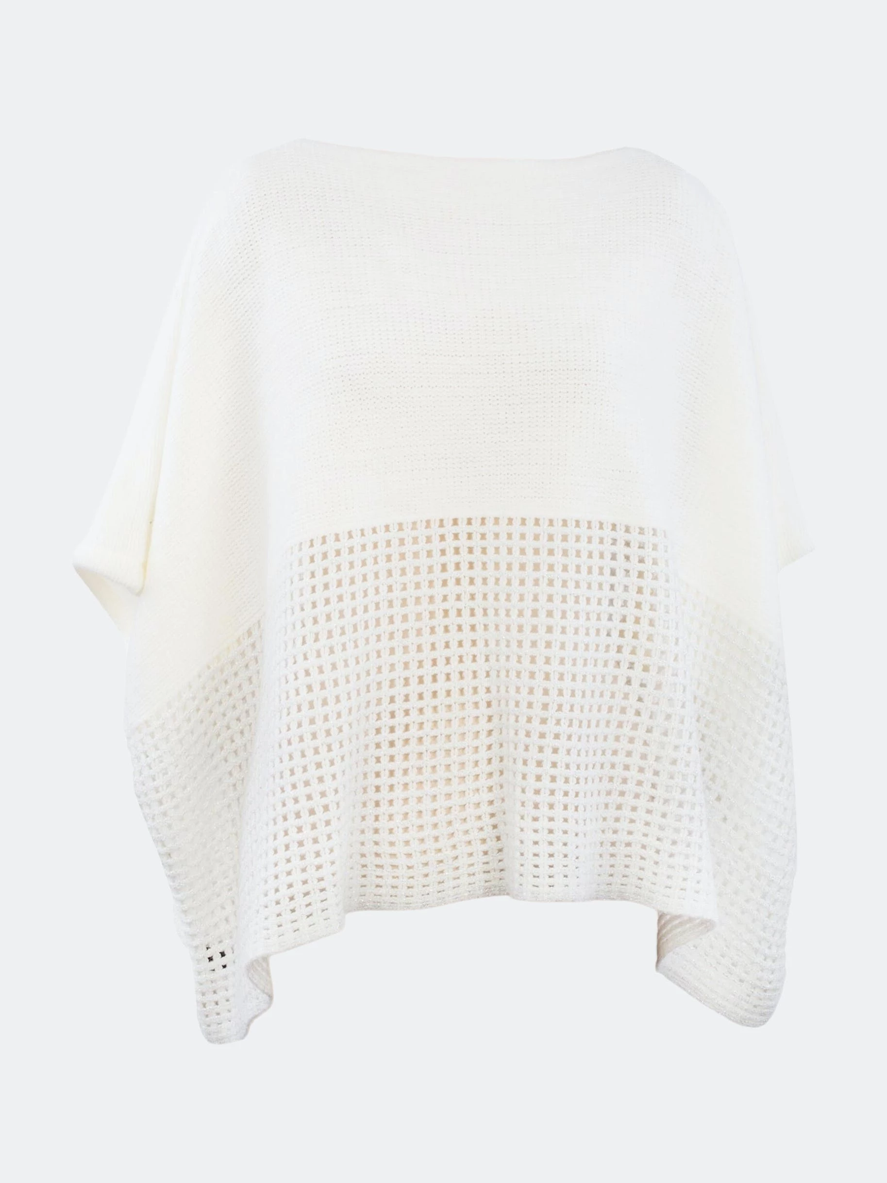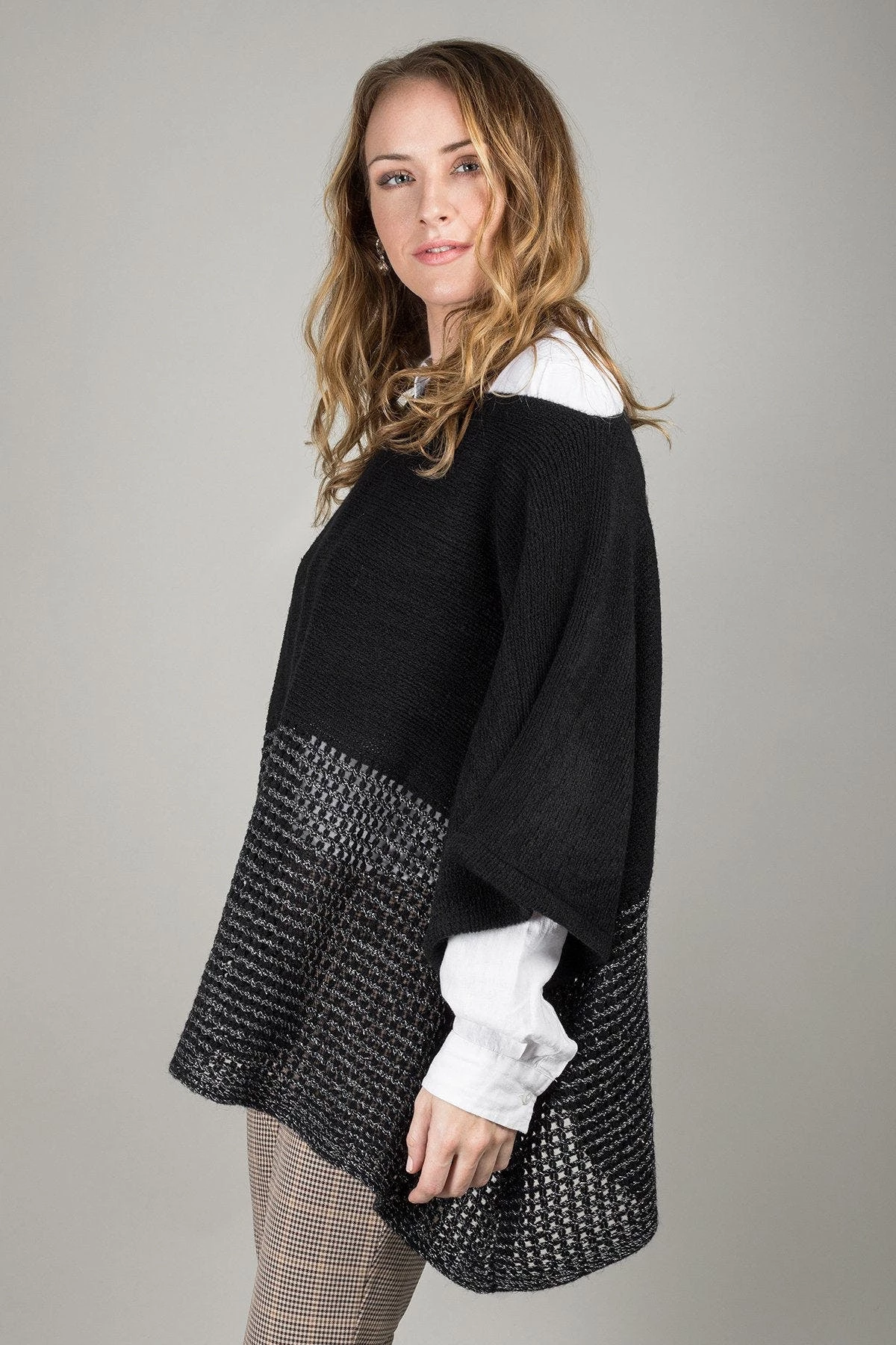 With a playful metallic weave and eyelet bottom, this roomy poncho is a lightweight and cozy addition to casual or dressy outfits.